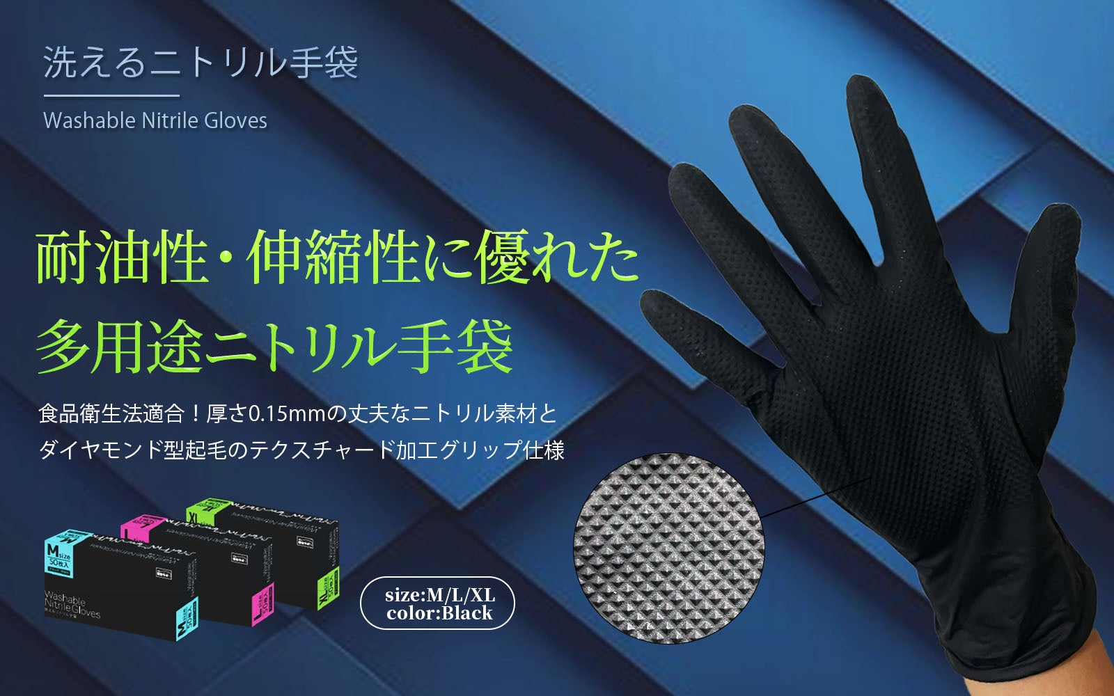 日本でもこの「洗えるニトリル手袋」は、食品衛生法適合を取得しております。