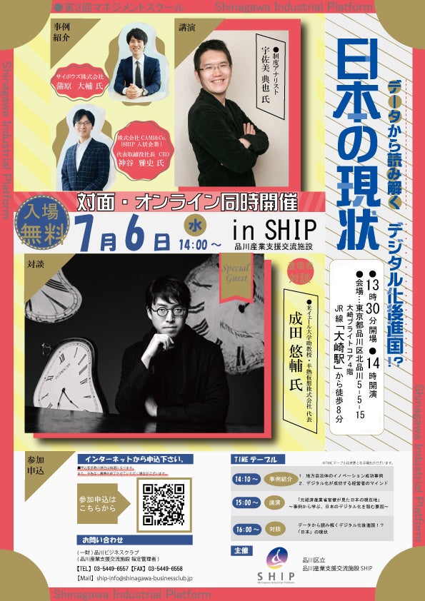 成田悠輔氏・宇佐美典也氏出演!!データから読み解く デジタル化後進国!? を7月6日(水)14時~に品川産業支援交流施設SHIPにて開催