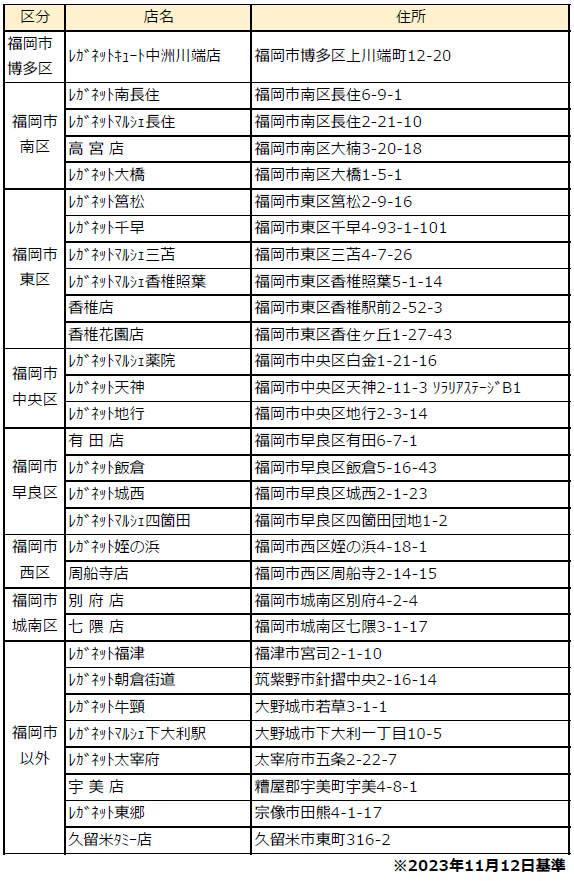 飲食業界を中心にテイクアウト・デリバリー需要に合わせて各種配送サービスが普及する中、西鉄ストアでは2022年10月にレガネット筥松(福岡市東区)にて試験的導入を行い、その後、福岡市内の店舗を中心に徐々に導入店舗を拡大し、2023年10月時点では30店舗に導入しています。
