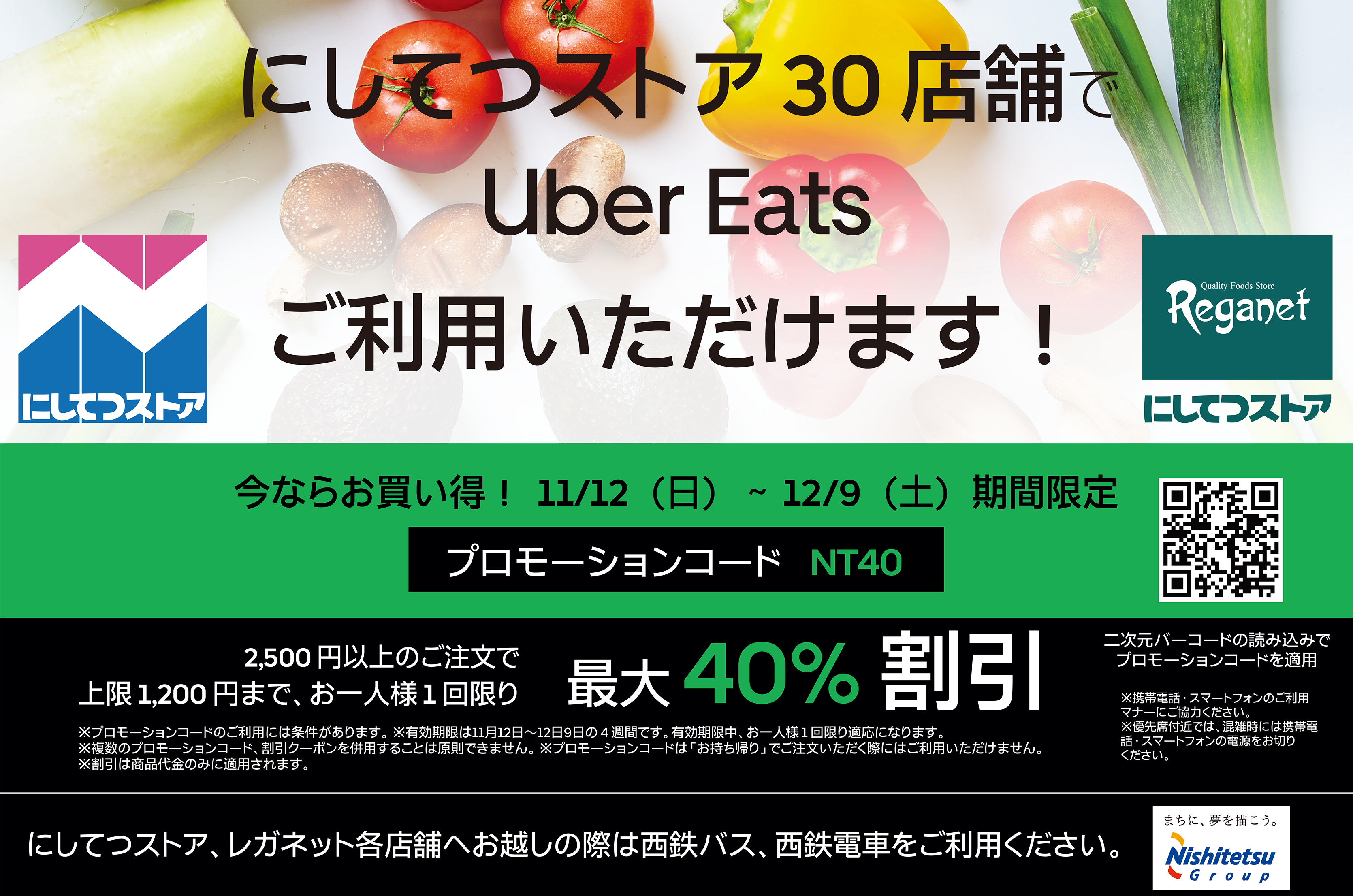 にしてつストア30店舗でUber Eatsを導入中!最大40%オフクーポンを11月12日から配布