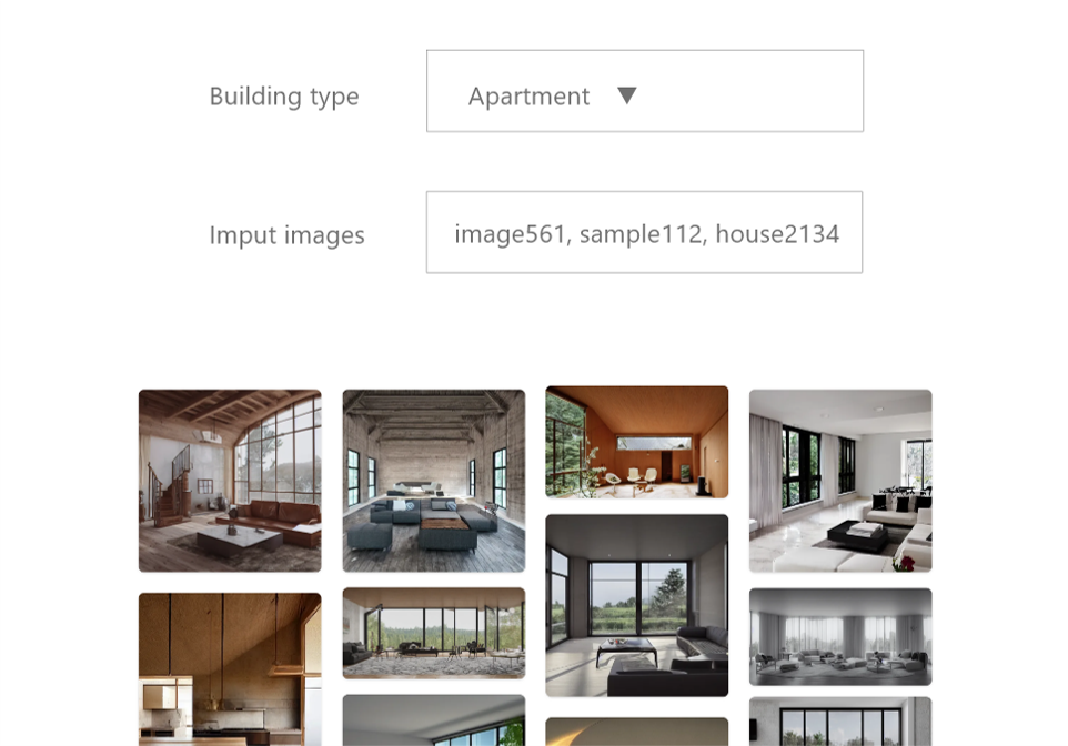 設計の最初のフェーズにおいては、デザイナーはクライアントのインタビューを通じて、要望に近いような様々なプランを作成し、フィードバックを受けながらプランを修正するといったプロセスを何度も繰り返しています。これには多くの手間とコミュニケーションコストがかかっています。画像生成モデルは、これらのコミュニケーションを削減することが期待できます。自動デザイン生成ソフトウェアstadi(ステイディ、旧studiffuse)は、クライアントもしくは担当のデザイナーが入力した画像やキーワードをもとに画像を作成することに加え、生成した画像に類似する画像を検索エンジンからキュレーションすることで、クライアントの要望に近いデザインを創出し、デザイナーのコミュニケーションコストを削減します。また、自社ブランドのデザイン事例画像をモデルに入力し学習させることで、自社ブランドに近いデザインを創り出すことも可能です。