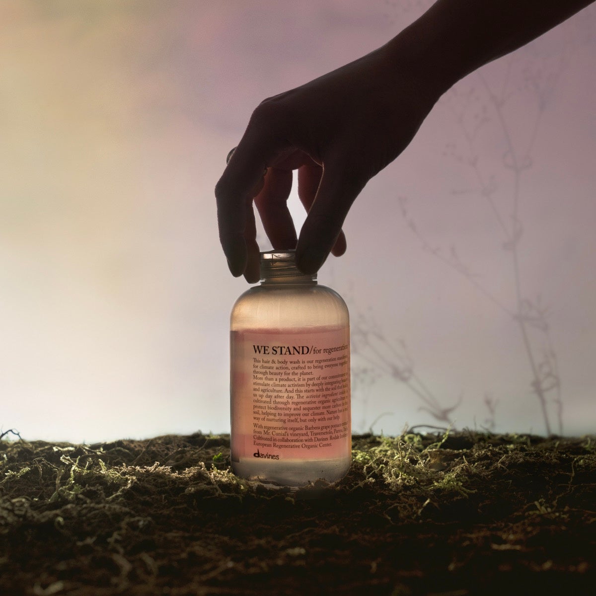 『ウィ スタンド ヘア アンド ボディウォッシュ』にはローデール研究所*³との取り組みの成果を結実させた成分*¹を初めて使用。再生型オーガニック農業を実践するMr.クニアルの農園のブドウを利用したエキス*¹が配合されています。