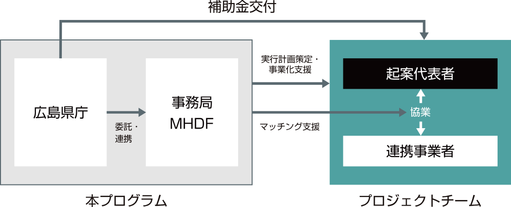 事業内容:農水産事業者の「稼ぐ力」を高めるため、マーケットインの視点で多様な業種の企業と農水産事業者が連携し、専門家のアドバイスを受けながらイノベーションを起こし、広島の誇る新商品や新サービスの提供等、新たなビジネスを創発することを目的としています。