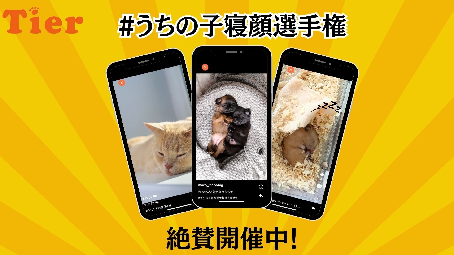 『Tier』投稿キャンペーン第1弾は「うちの子寝顔選手権」!うちの子の寝顔が渋谷愛ビジョンで放映されるかも…!?
