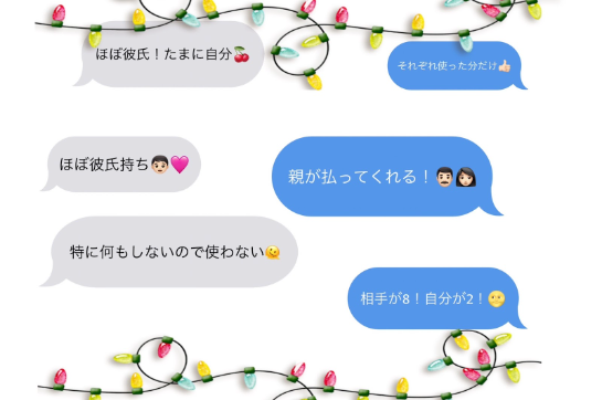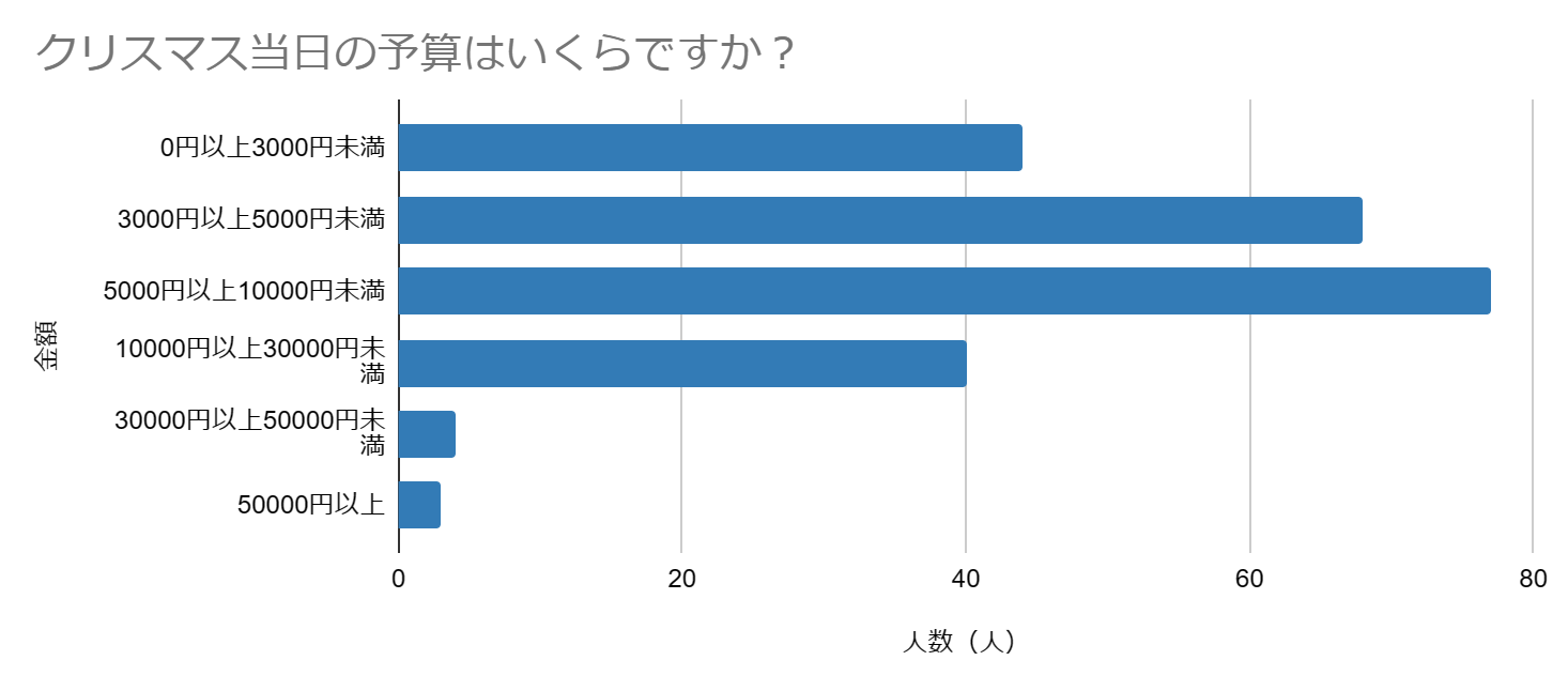 ・クリスマスの予算は全体の8割が10,000円未満で割り勘が大多数