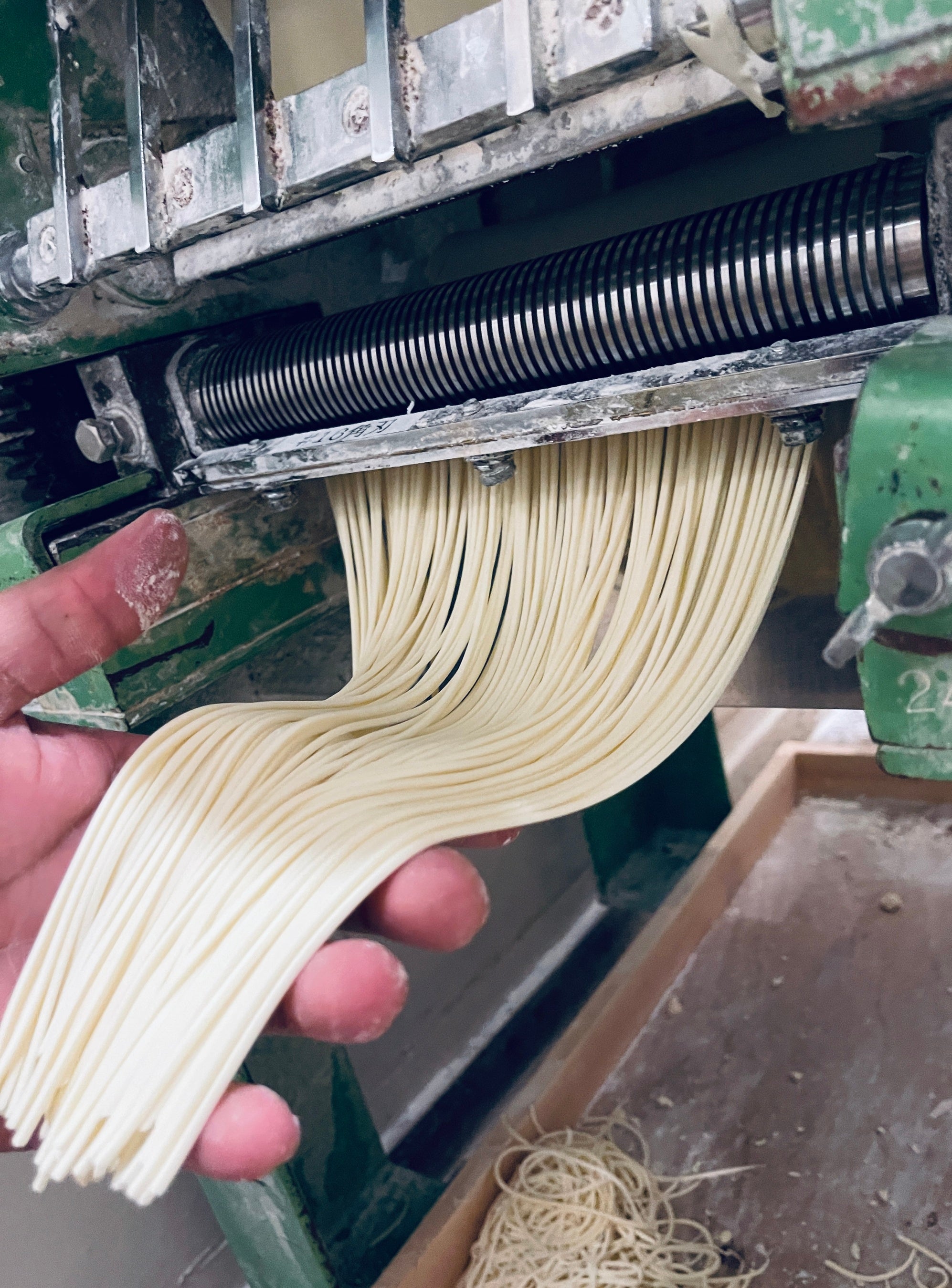 つけ麺の命である麺については毎日店舗で製麺することをこだわりとしています。