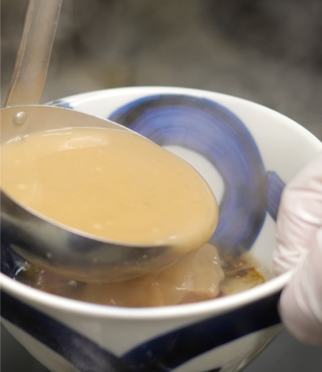 合わせるスープは三ツ矢堂製麺定番の濃厚な豚骨魚介スープ。