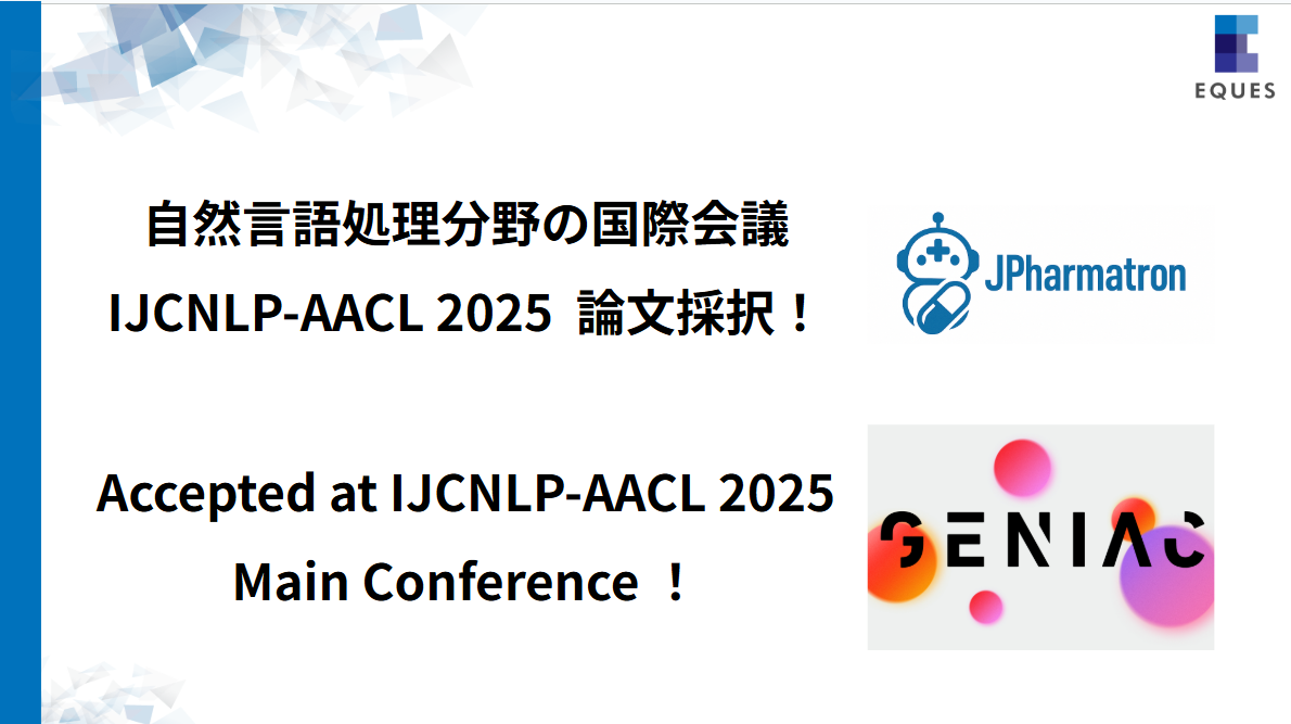 弊社は、経済産業省・NEDOによる日本の生成AI開発力強化を目的としたプロジェクト「GENIAC」において開発した製薬業務に特化した大規模言語モデル (LLM) である「JPharmatron」に関する論文が、2025年12月にインド・ムンバイで開催される「IJCNLP-AACL 2025」の本会議(Main)に採択されたことをお知らせいたします。
