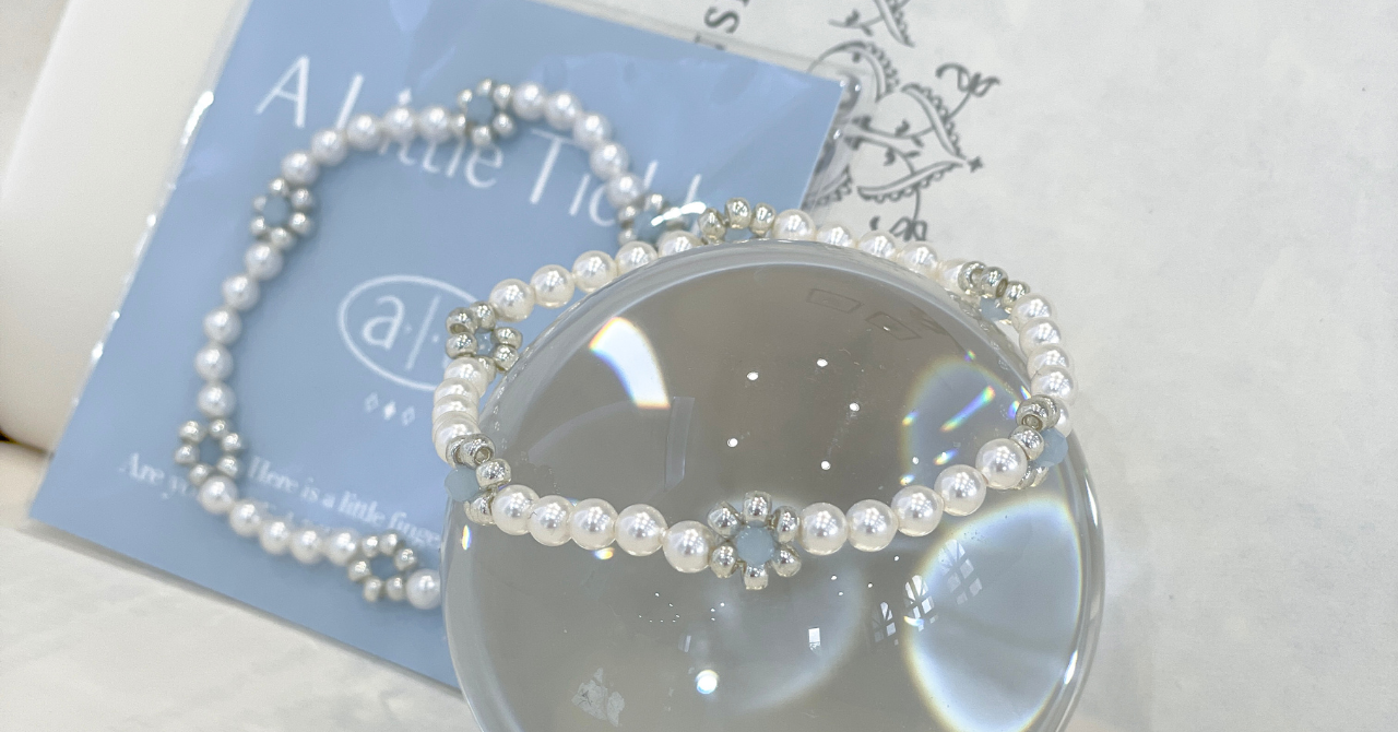 私たちの感性を刺激するムード、アリトルティクルのパールヴィンテージブレスレットは、夏にふさわしい真珠のシルバーと爽やかで淡い水色で手元にポイントを与え、ファッションの完成度を高めてくれルアイテム。