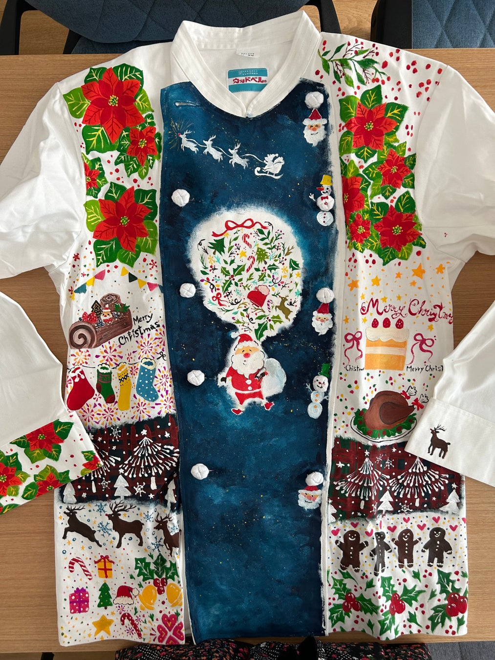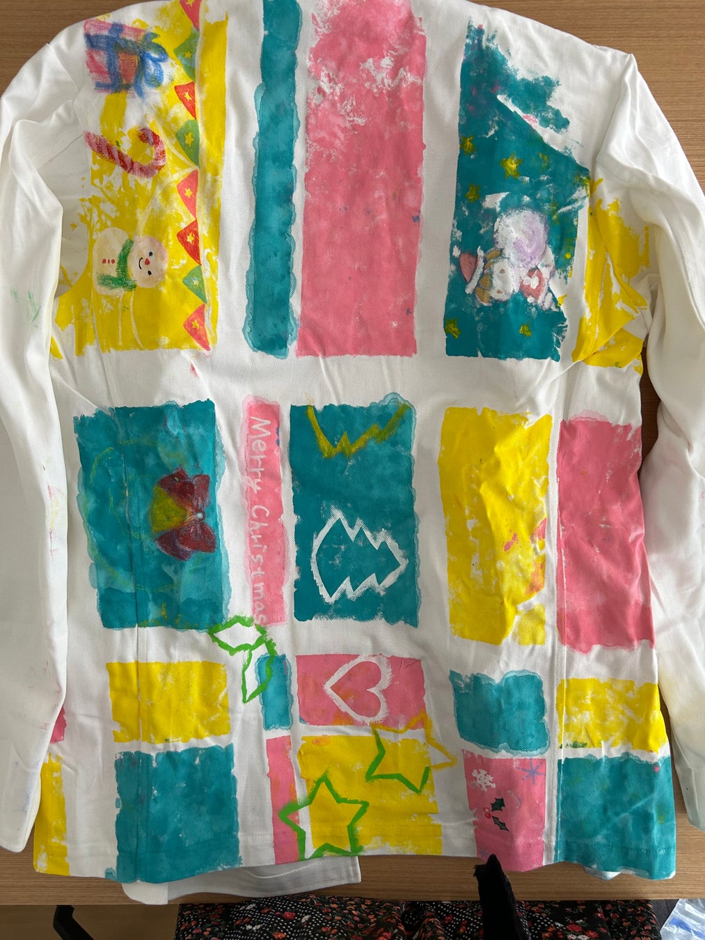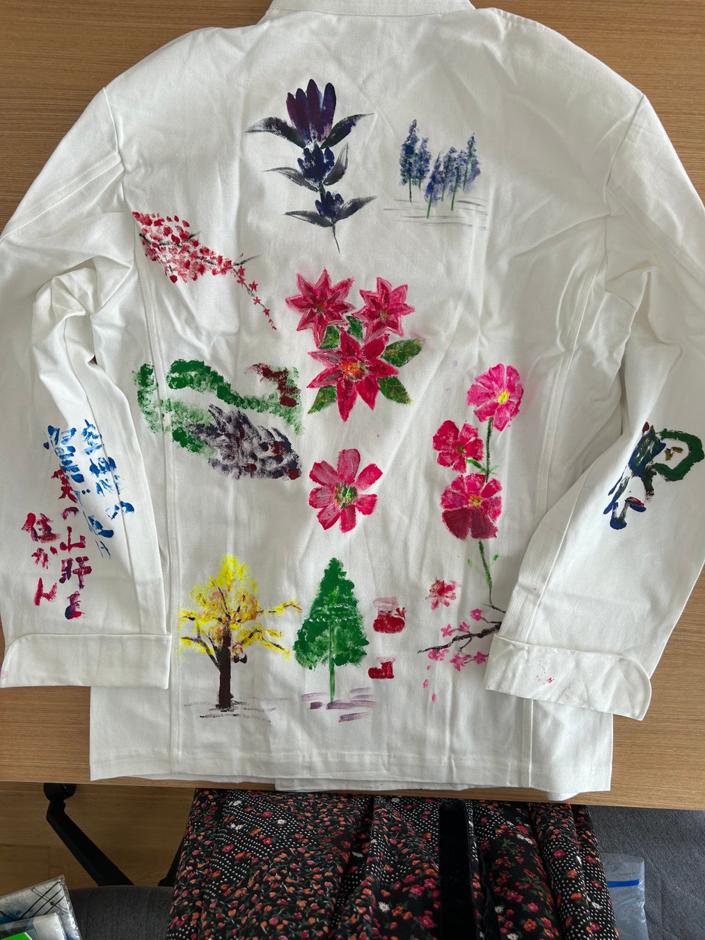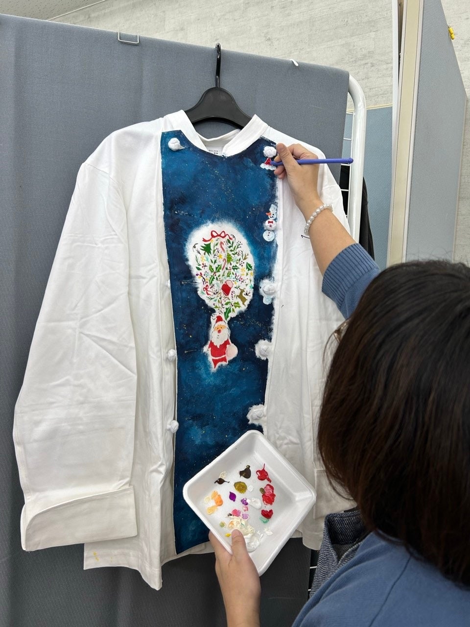 私たちダイイチは廃棄予定のコックコートをご提供しました。そのコックコートをキャンバスとして、特定非営利活動法人インクルーシヴ・ジャパンの利用者様に自由に絵を書いていただきました。