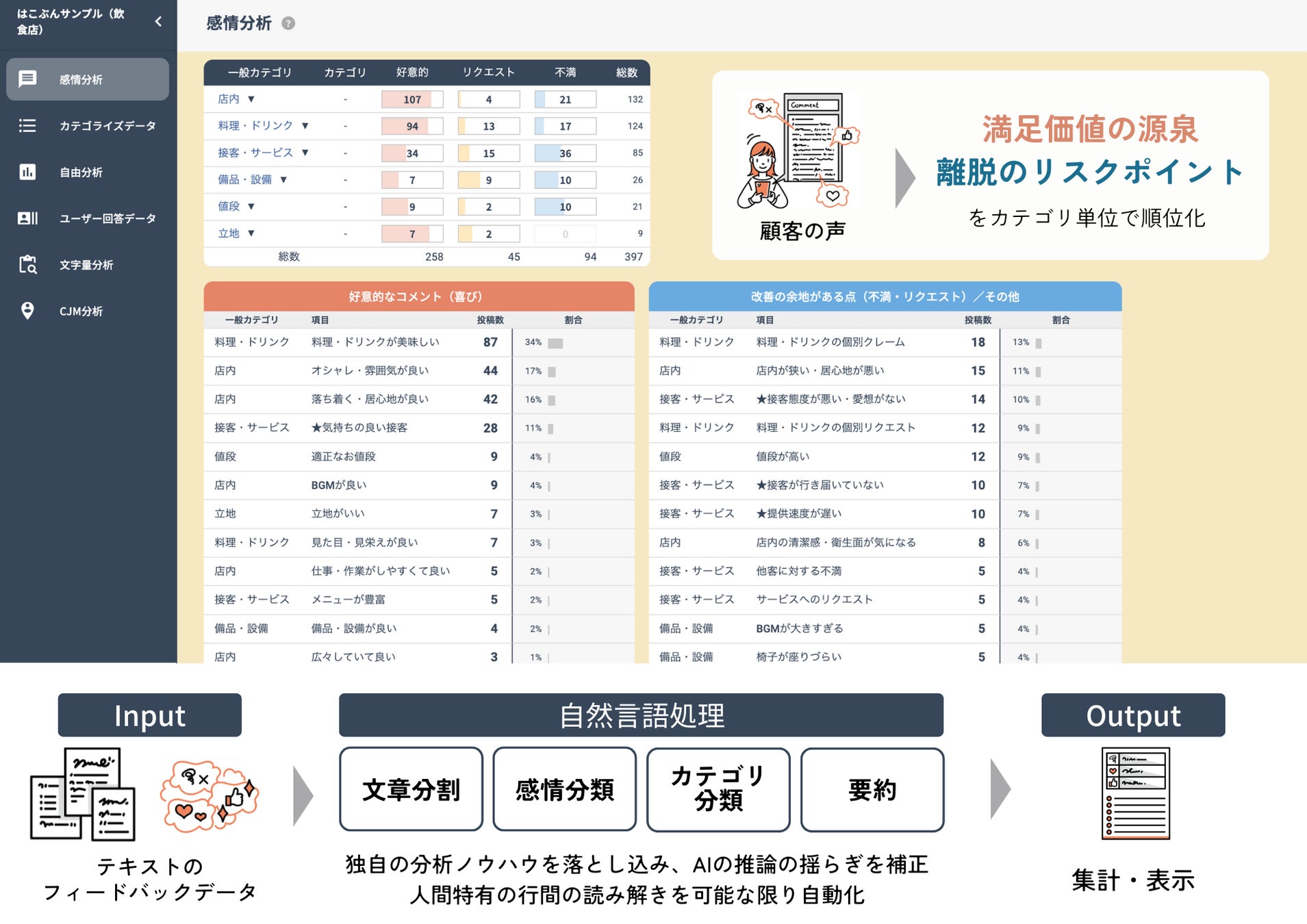 顧客のマイクロニーズ/ペインを手軽に収集・分析できる「ホンネPOST」を運営する株式会社はこぶん(本社:東京都世田谷区、代表取締役:森⽊⽥剛)は、マイクロソフトのイノベーション創出拠点「Microsoft AI Co-Innovation Lab Kobe」(以下AI Co-Innovation Lab)のSprint開発支援を受け、大量の顧客の声データを解析し、埋もれていたニーズや課題を見える化できる「感情分析AI」を開発しました。これにより、分析スキルやノウハウを持たない企業担当者でも本格的なVOC分析(Voice Of Customer:顧客の声)がより簡単に実現できるようになります。