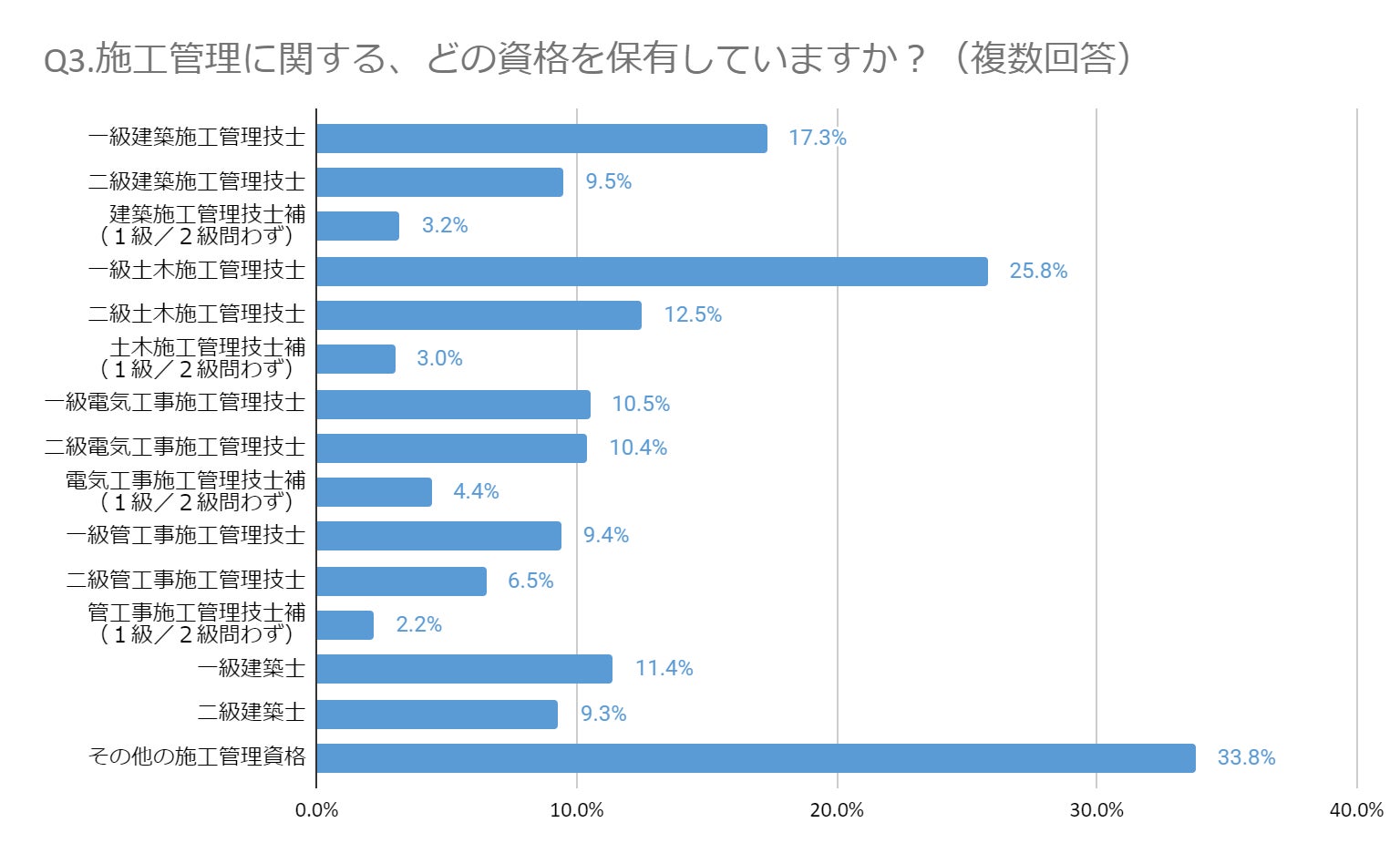 続いて、「一級建築施工管理技士」が多い結果となりました。
