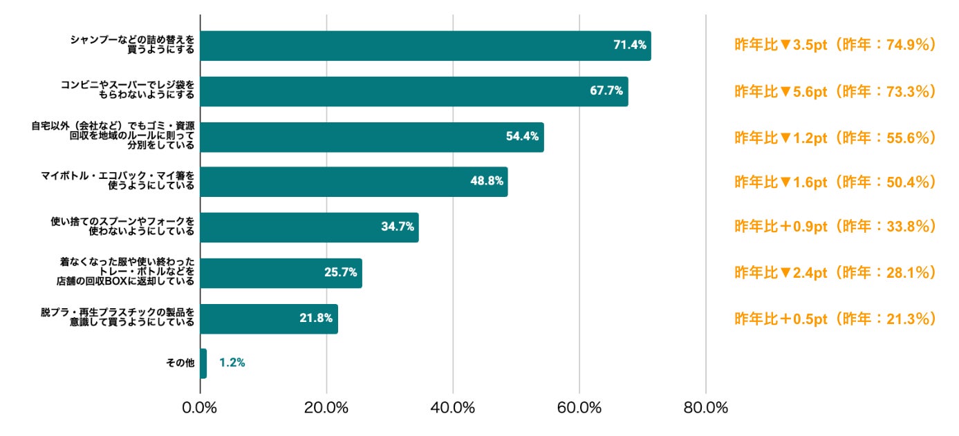 「脱プラ・再生プラスチックの製品を意識して買うようにしている」と回答