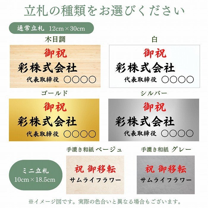 立札も選べるようになっておりゴールド色もあるのが面白い。