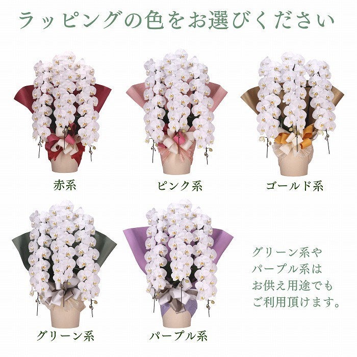 ラッピングをシックにし、お供え用胡蝶蘭としても利用可能。