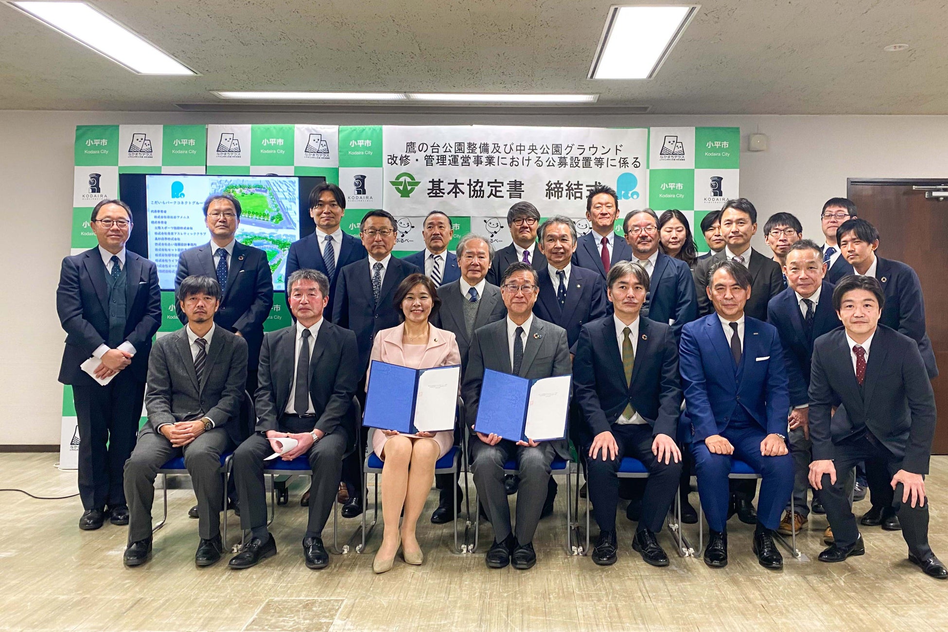 株式会社日比谷アメニス(本社:東京都港区、代表取締役:伊藤幸男)を代表事業者とする企業グループ「こだいらパークコネクトグループ」は、東京都小平市の鷹の台公園の整備、中央公園グラウンドの改修、市立公園・体育施設等101施設の指定管理の各事業を一括して行う事業者に選定されました。これに伴い同市と同グループが相互に協力し、事業を確実かつ円滑に推進するために必要な事項を定めた「鷹の台公園整備及び中央公園グラウンド改修・管理運営事業における公募設置等に係る基本協定」を締結しました。