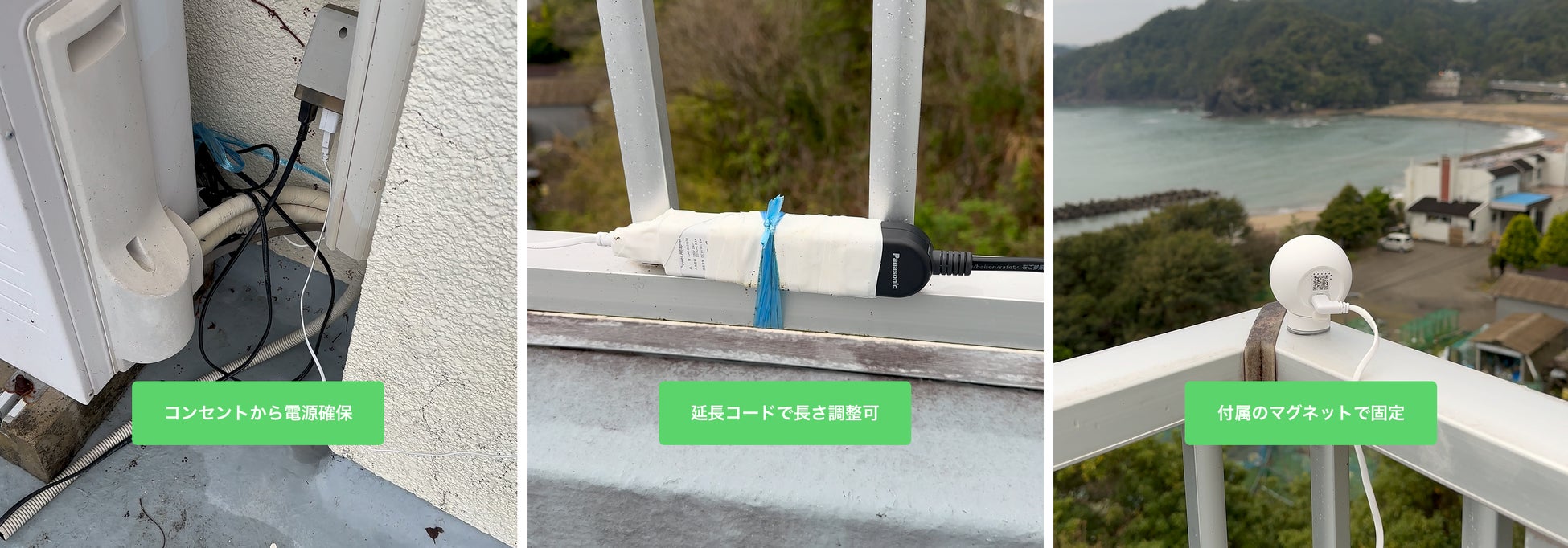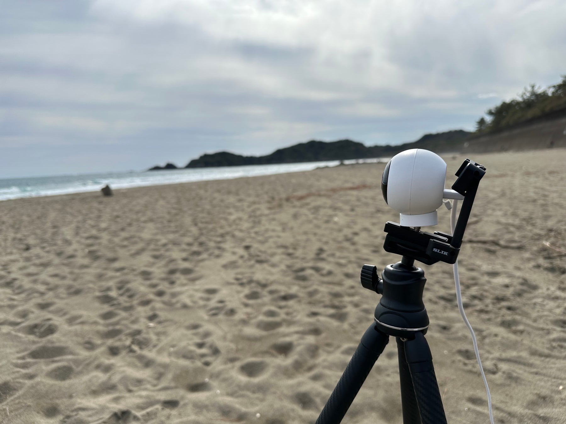 海岸での電源とネットワーク環境は、ポータブル電源でJUSTY カメラの電源を確保し、ポケットWiFiでネットワークに接続し、YouTube Live配信を行いました。