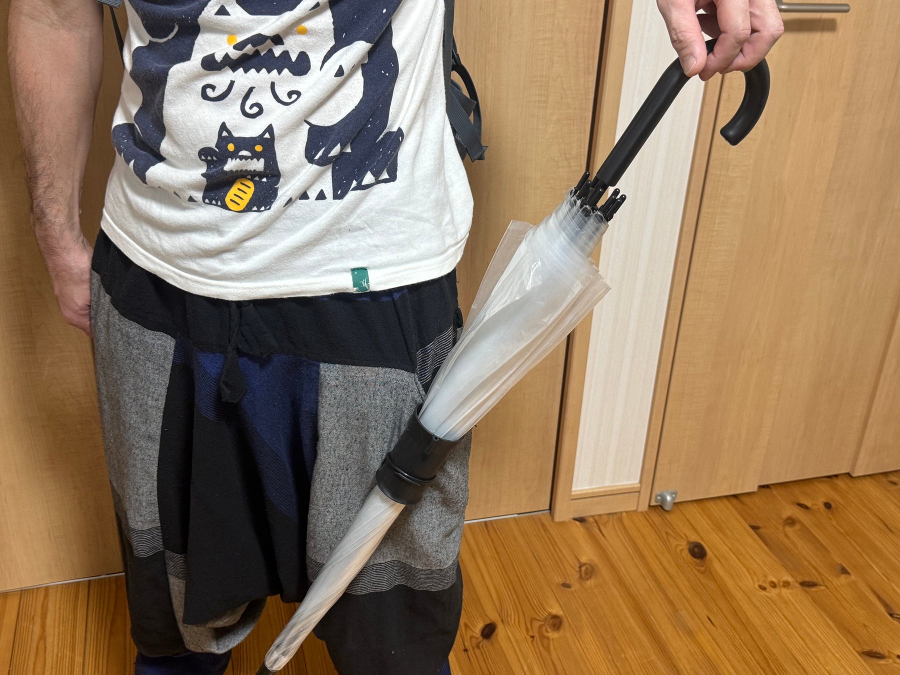 傘ホルダーをリュックに取り付けておく事で、片手で傘の動作を完了する事ができます。