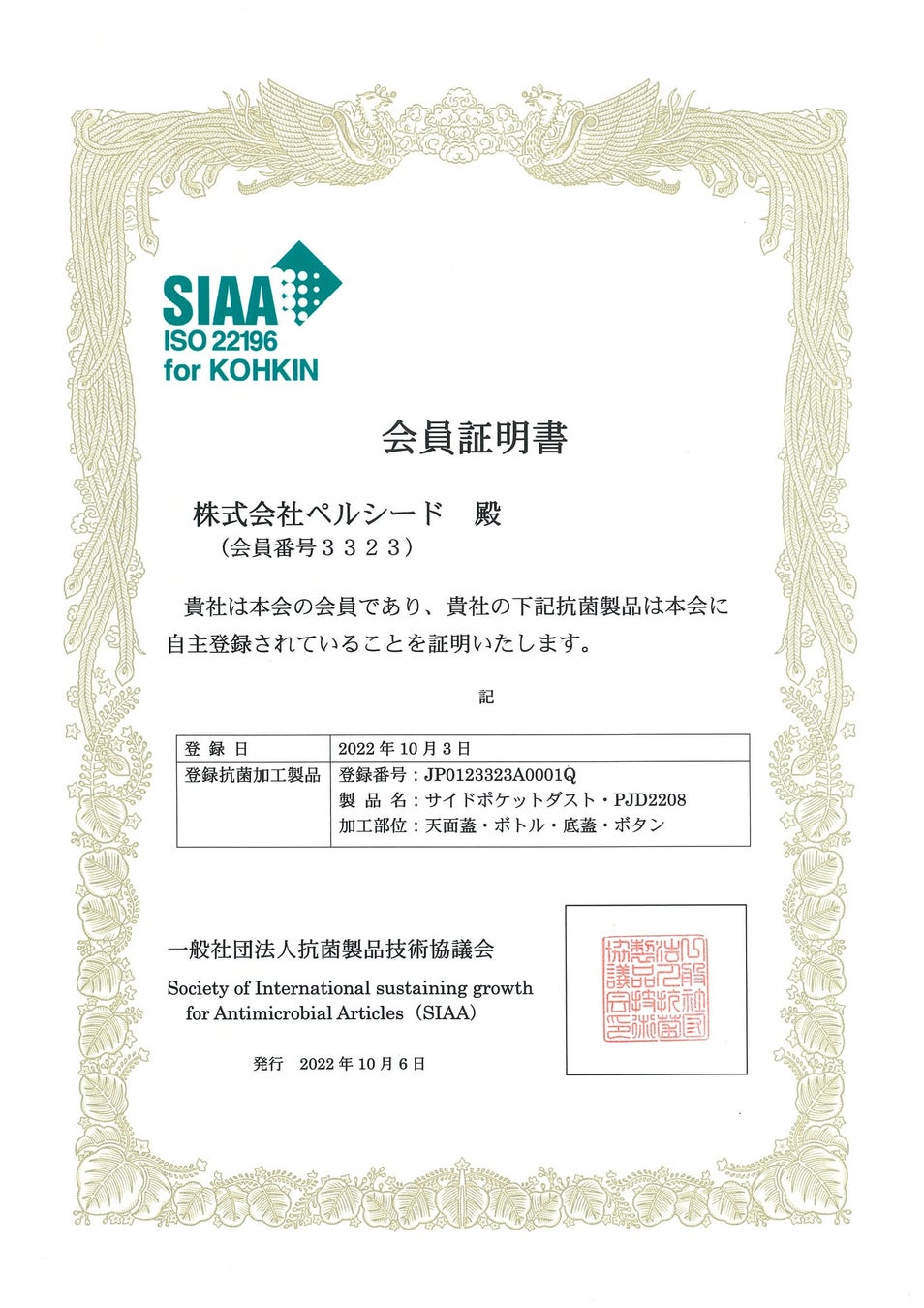 ※SIAAマークはISO22196法により評価された結果に基づき、抗菌製品技術協議会ガイドラインで品質管理・情報公開された製品に表示されています。