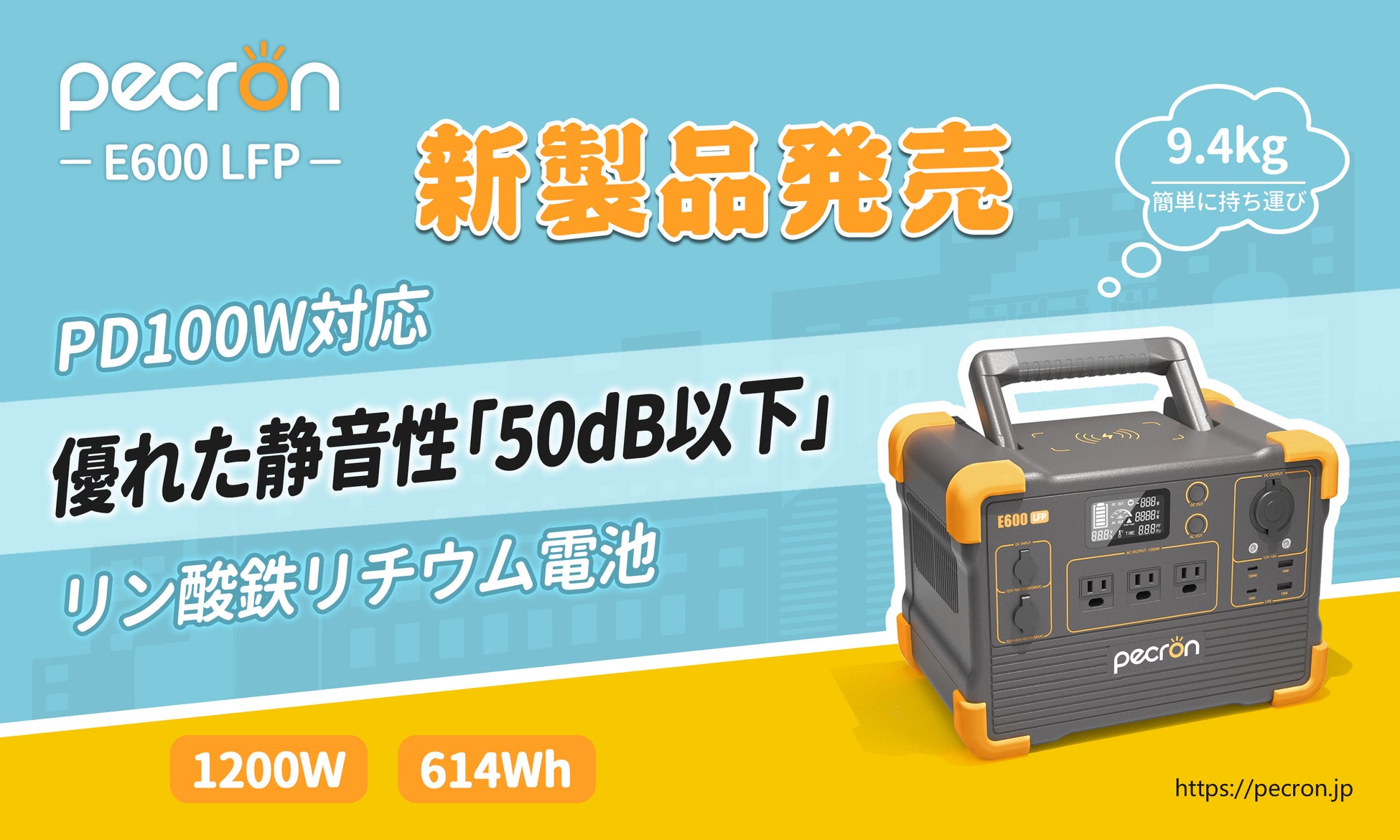 【Pecron新製品】リン酸鉄リチウムイオン電池を搭載した1200W小型ポータブル電源「Pecron E600LFP」が12月6日(火)から発売