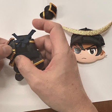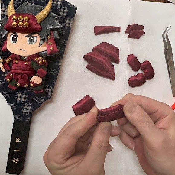 AIの導入により、これまでの伝統図案にはなかった革新的なビジュアルの具現化が可能となりました。「ぽちゃキャラ」の可愛らしさと、侍・武将が持つ「魔を滅する」力強さを融合。伝統的な押絵技法により、平面のデザインに奥行きと温かみを与えています。