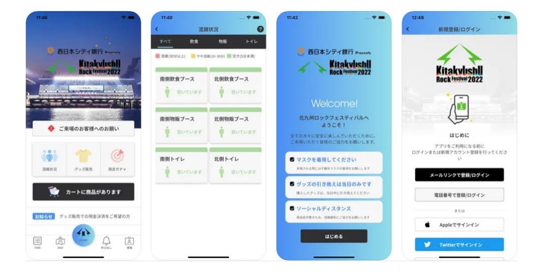 また、出演アーティストやプレイリスト、タイムテーブル、エリアマップなどの確認はもちろん、オフィシャルグッズの購入機能が利用できるほか、ハズレなしのアプリ限定「北九州ロックガチャ」も販売。ご購入いただいたガチャ商品は、会場の交換所でイベント当日にお受け取りいただけます。