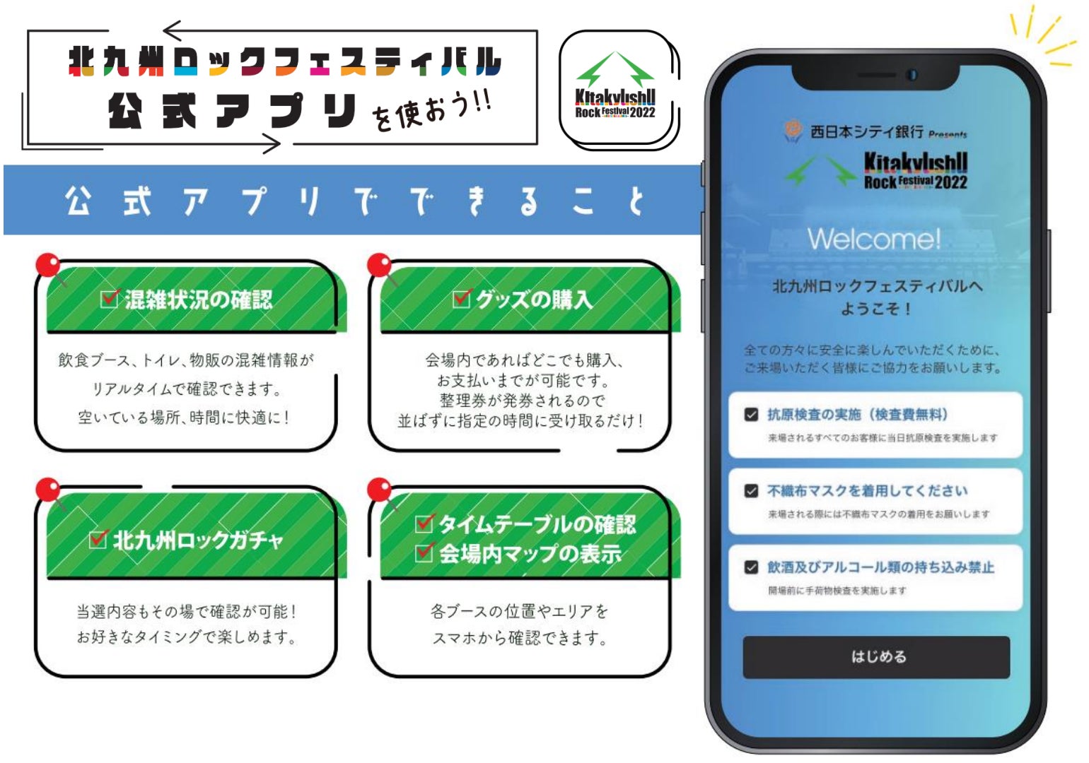 「北九州ロックフェスティバル 2022 with SDGs spirits」感染症対策を徹底し、安全・安心で快適なフェスを実現する公式アプリを発表!!