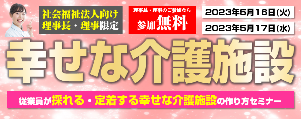 そしてこの度、介護施設を運営する社会福祉法人の理事長・理事限定で、『職員が採れる・定着する幸せな介護施設の作り方セミナー』を開催することにいたしました。