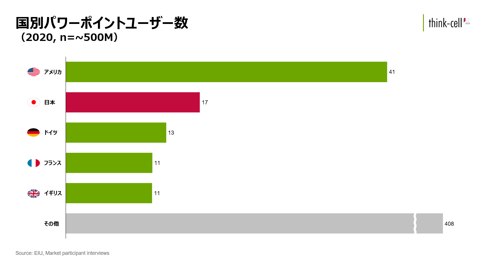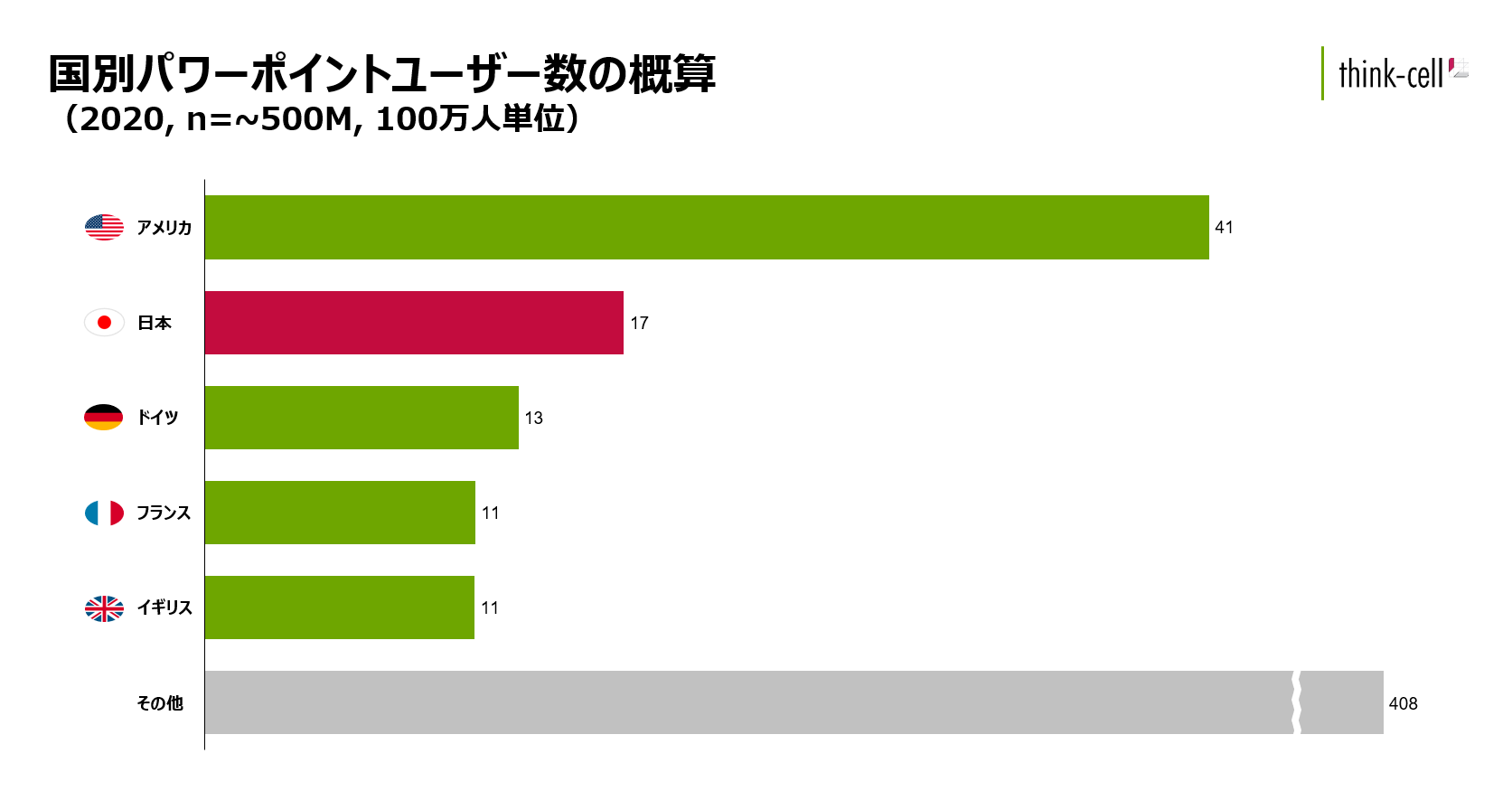 ■パワーポイントユーザー数は5か国中アメリカに次いで2番目に多い