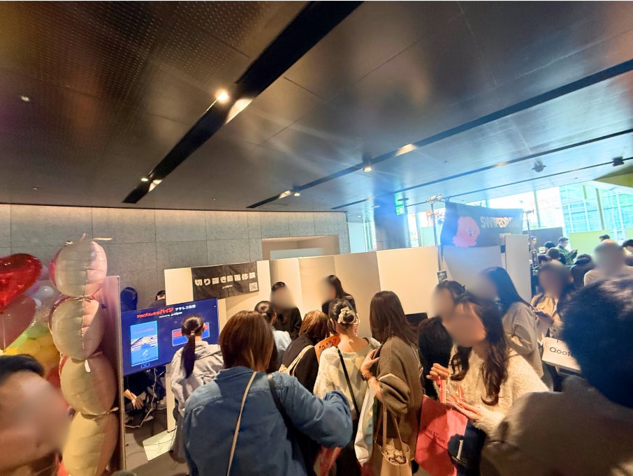 冒頭から行列が途切れることなく、アテレコ動画をその場で視聴し、歓声が上がる場面も複数見られました。