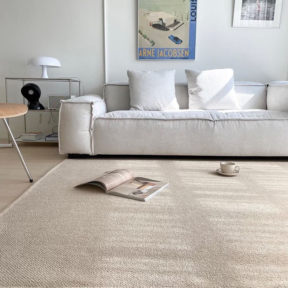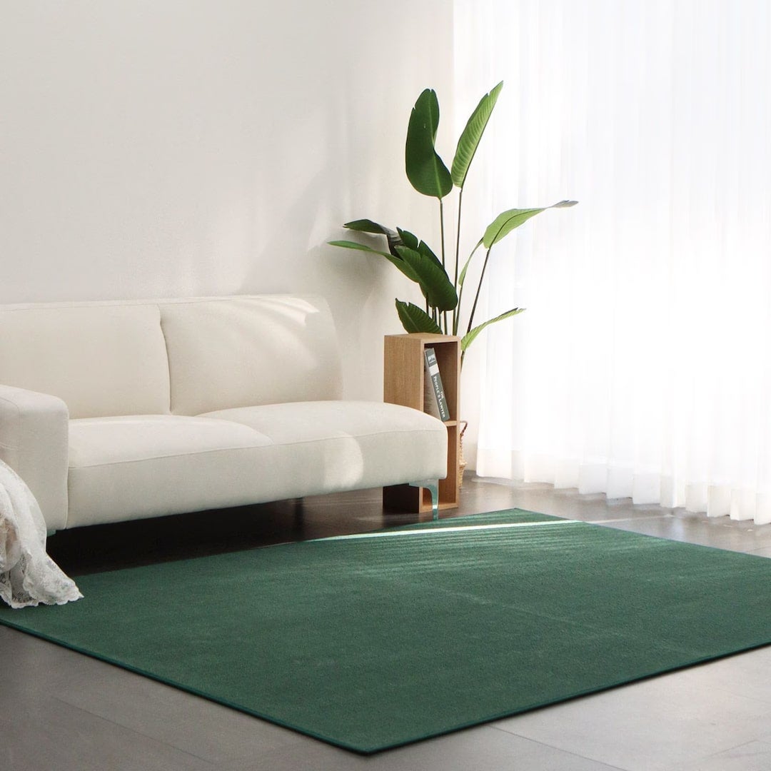 どんなインテリアにもなじみやすいベージュやアイボリーといったくすみカラーを中心に5色展開で、毛足が短くさらっとした質感なので季節を問わず気持ちよく使えます。ウォッシャブルでお手入れしやすく、ペットやお子さんのいるご家庭にも好評です。