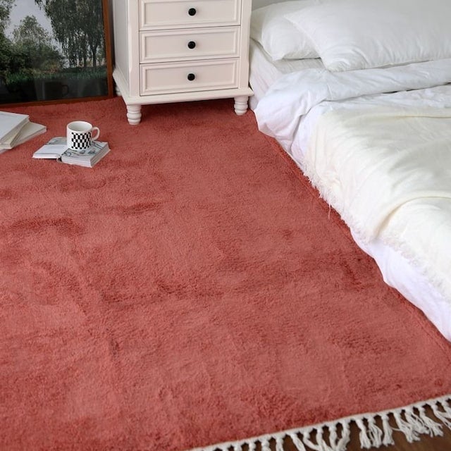 フチにあしらったタッセルがほどよいアクセントになったウォッシャブルラグは、ありそうでなかったデザインが人気です。グリーン、ブルー、ブリック、アイボリーの4色展開で、ヴィンテージ感のある絶妙なトーンがお部屋をスタイリッシュに演出します。