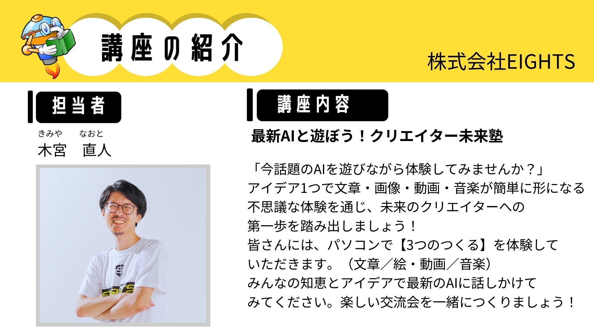 ・最新AIと遊ぼう!クリエイター未来塾/株式会社EIGHTS