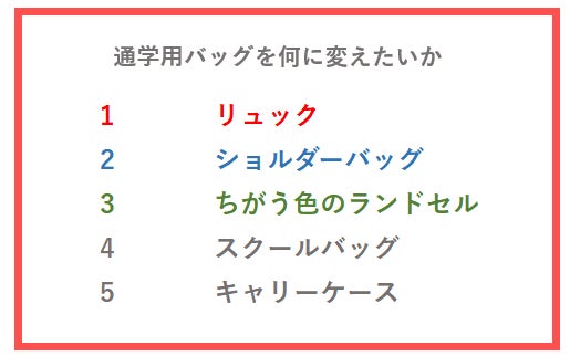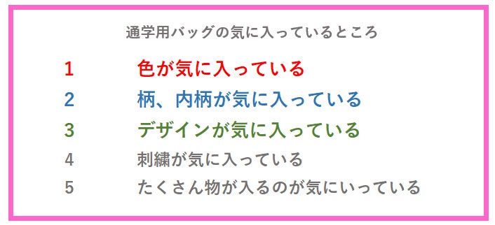 ★通学用バッグ「お気に入りポイント」第一位は「色」。「気に入っていないポイント」第一位は「重さ」!