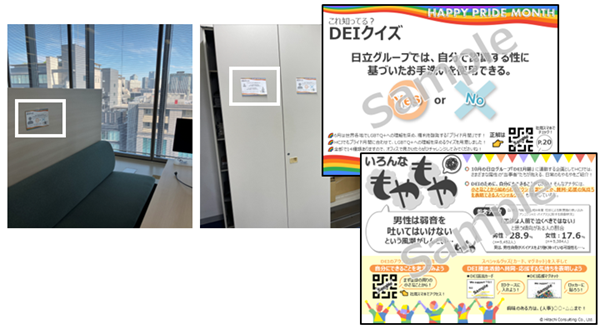 オフィス内にDEI理解促進に向けたコンテンツを掲示し、従業員が日々、考えることができる機会を提供