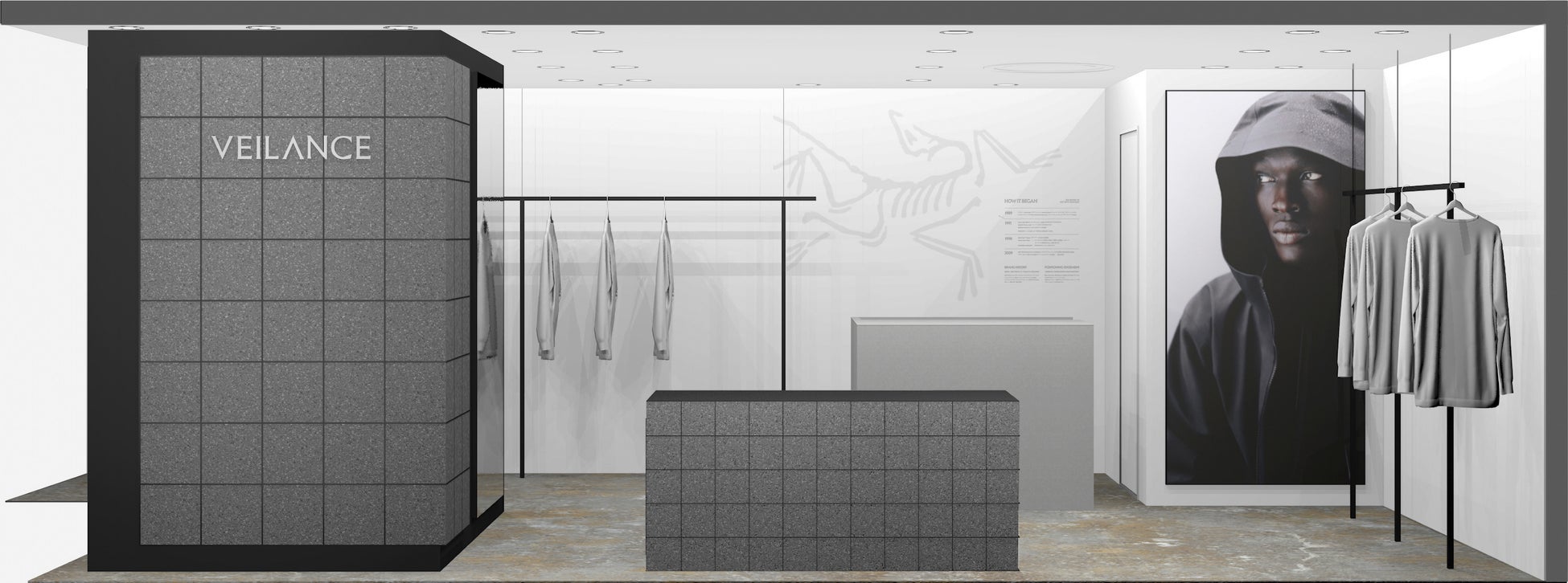 今回オープンする「ARC’TERYX VEILANCE阪急メンズ東京店」は、VEILANCEを着用するフィールドとなる「都市」をイメージ。店舗の内装に使用したタイルは、廃棄を予定していたコンクリートを粉砕し、VEILANCEの世界観を表現する重要なマテリアルとして新たに生まれ変わり、「捨てることなく、長く使い続ける」というブランドのメッセージを込めております。