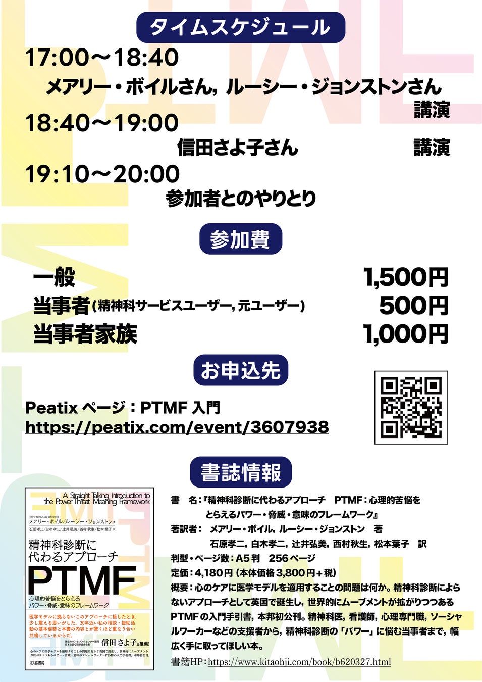 【終了】『精神科診断に代わるアプローチ PTMF』刊行記念オンライントークイベント「PTMF入門」