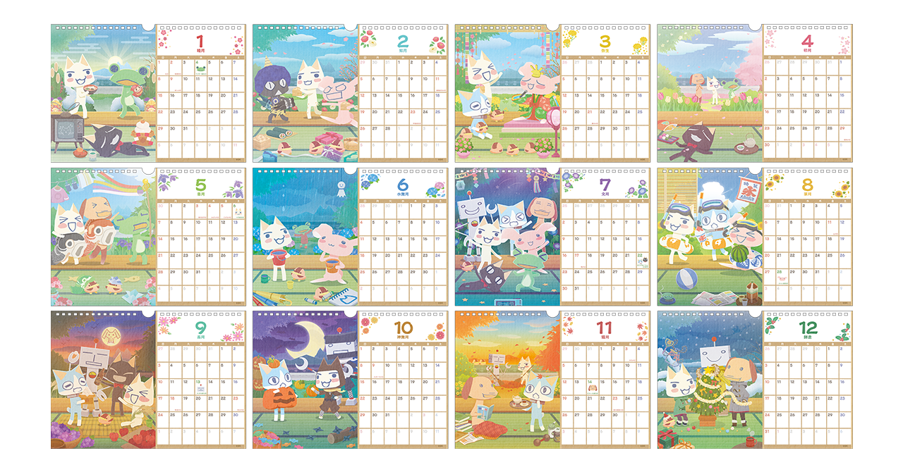 縁側で楽しく過ごすポケピたちの姿を、季節の移り変わりとともに1年通して楽しめます。