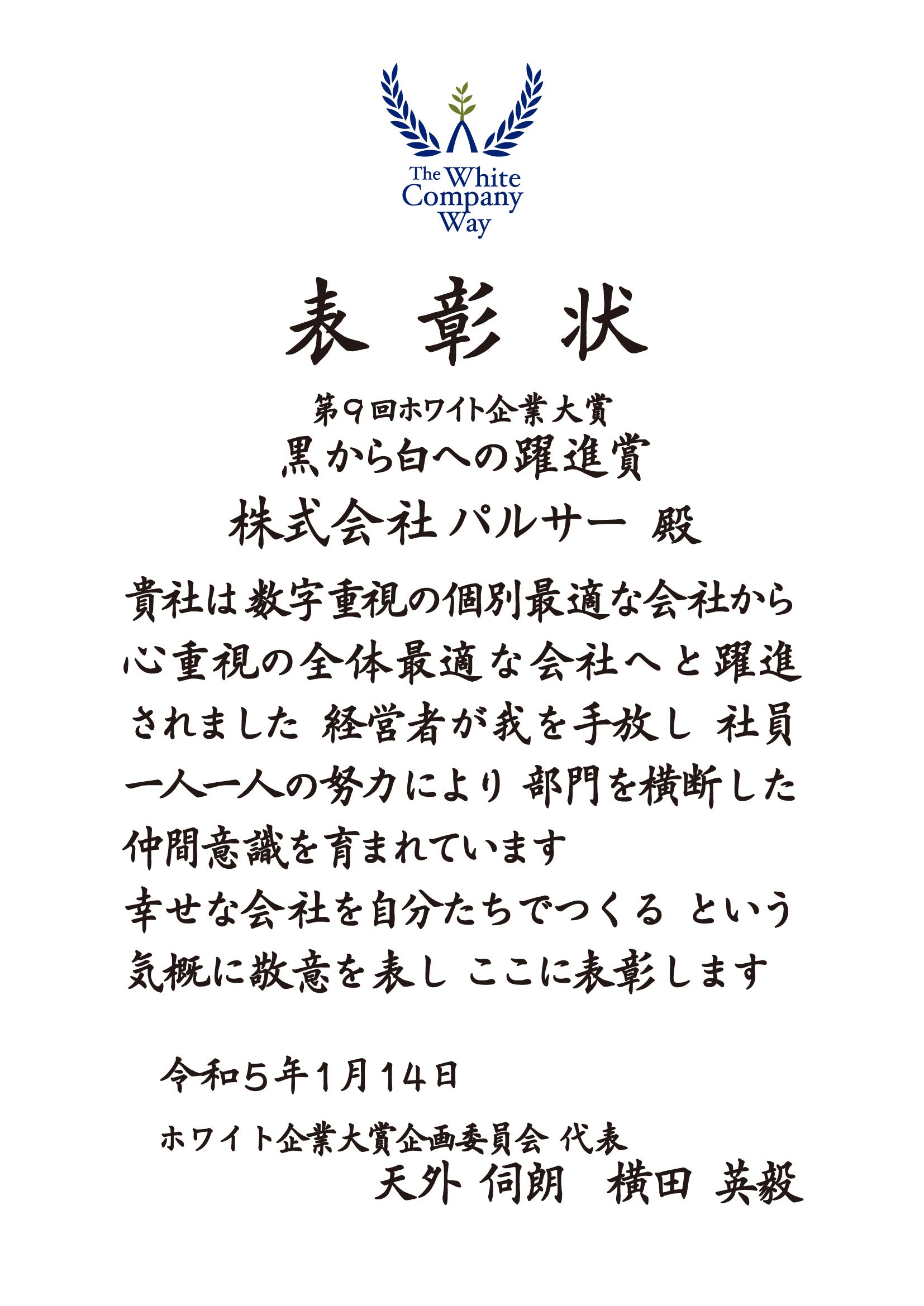 株式会社パルサーは第9回ホワイト企業大賞にて「特別賞」を受賞いたしました。