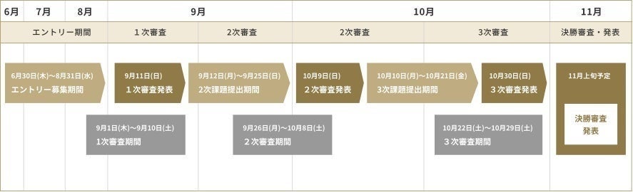 1次審査 ・・・ 9月1日(木)〜9月10日(土)/結果発表:9月11日(日)