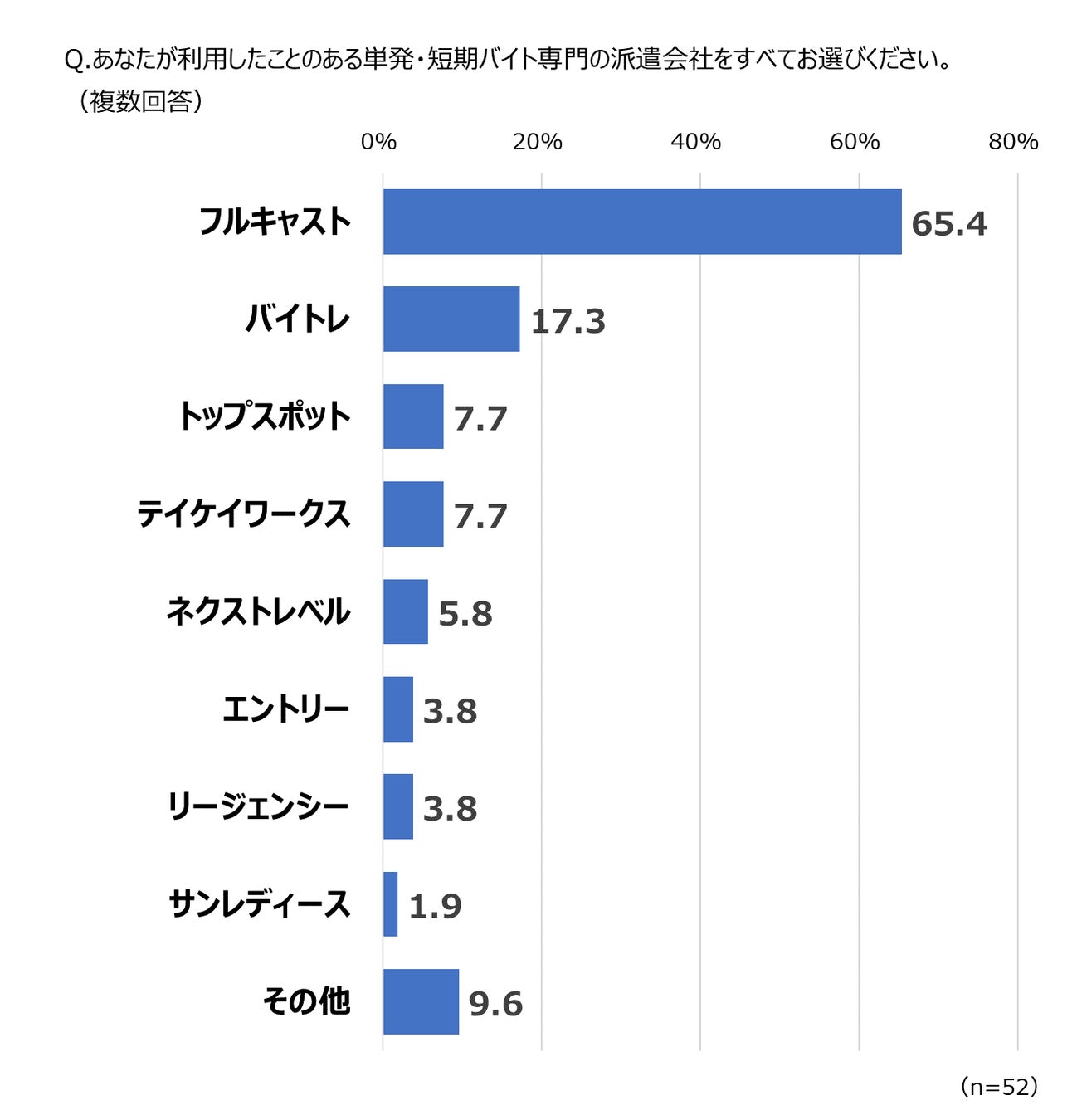 Q2. あなたが利用したことのある単発・短期バイト専門の派遣会社をすべてお選びください。 (複数回答)