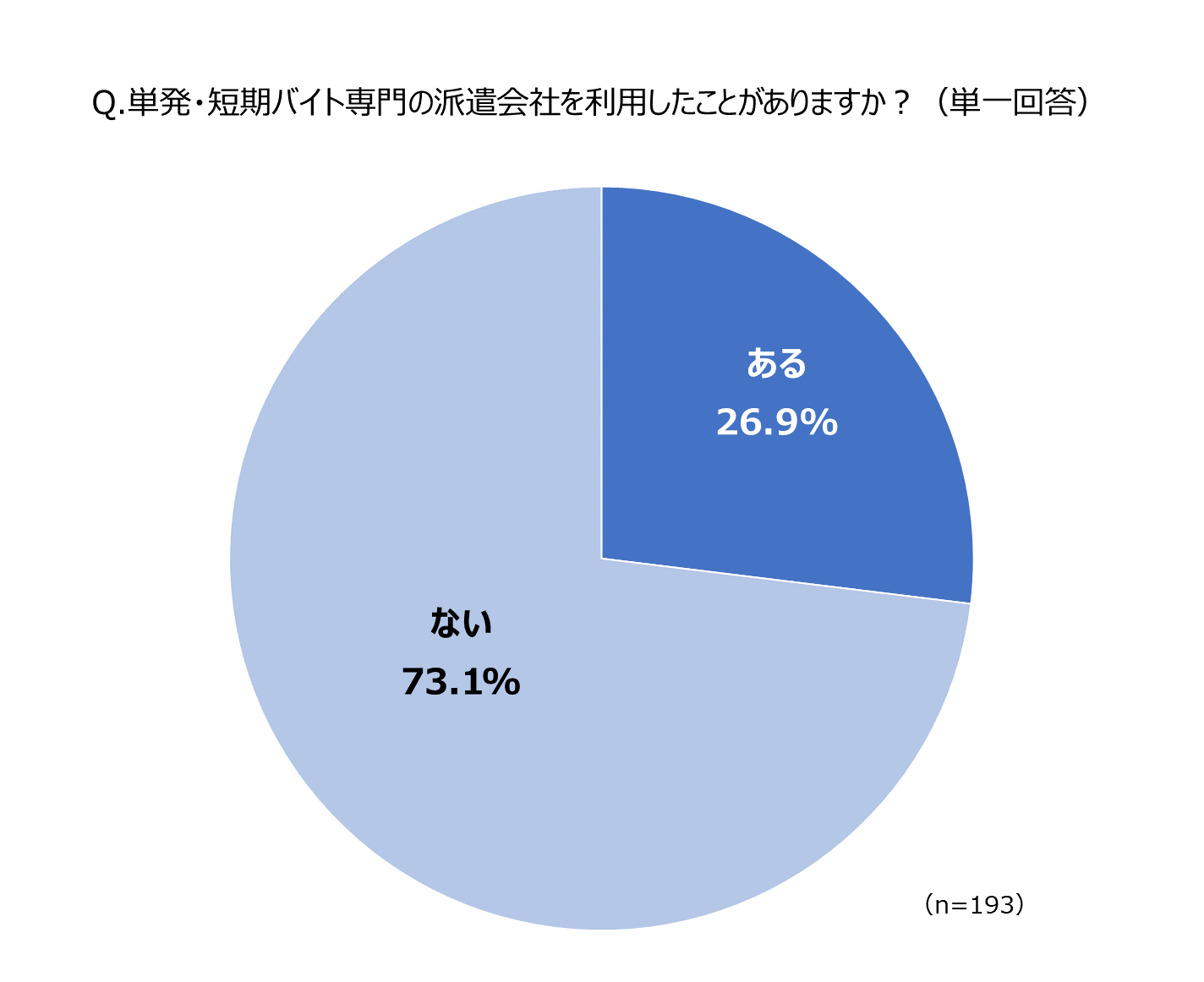 3年以内にアルバイト/パート経験がある方の26.9%が「単発・短期バイト専門の派遣会社を利用したこと」と回答