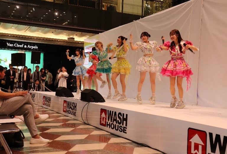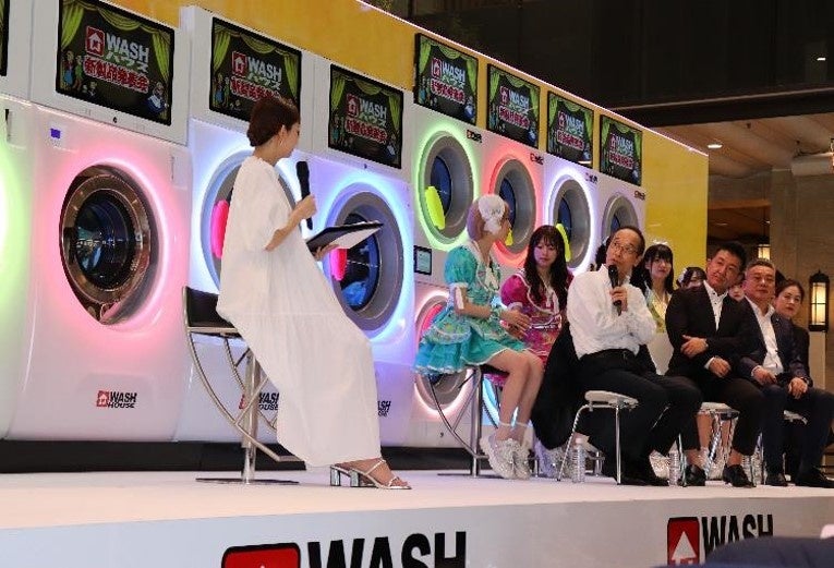 2024年7月20日(土)福岡県福岡市中央区ソラリアプラザ1階イベントスペースゼファにて、WASHハウスオリジナル洗濯機・乾燥機の発表会がありました。アイドルグループLINQのオープニングライブを皮切りに、新製品の除幕式、実機プレゼンテーションも行われました。発表会の後半では、WASHハウス社長 児玉康孝より、製品についての思いやWASHハウスが目指す今後の事業戦略など紹介。スペシャルゲストの東国原英夫氏を迎えたトークショーも開催されました。