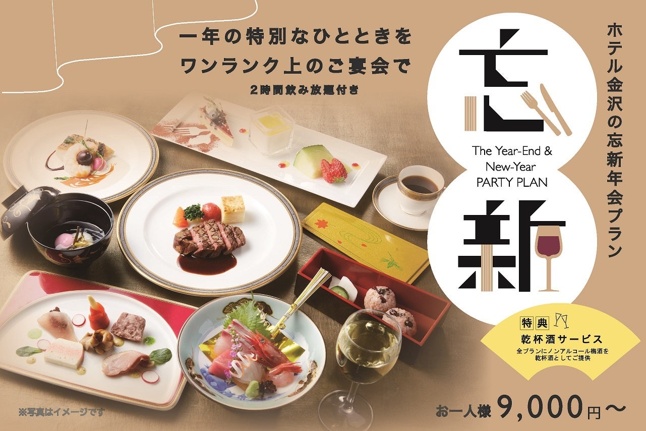 ホテル金沢株式会社(所在地:石川県金沢市堀川新町1-1、総支配人:小嶋 一夫 以下ホテル金沢)では、ご予算に応じて3つのプランからお選びいただける、特典付きの忘新年会プランを、2022年11月1日(火)~2023年1月31日(火)の期間限定で提供いたします。
