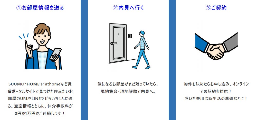 LINEで送るだけで仲介手数料が無料!「ぜろいちくん」の特徴