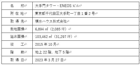 「大手門タワー・ENEOSビル」の一部持分(信託受益権)取得のお知らせ