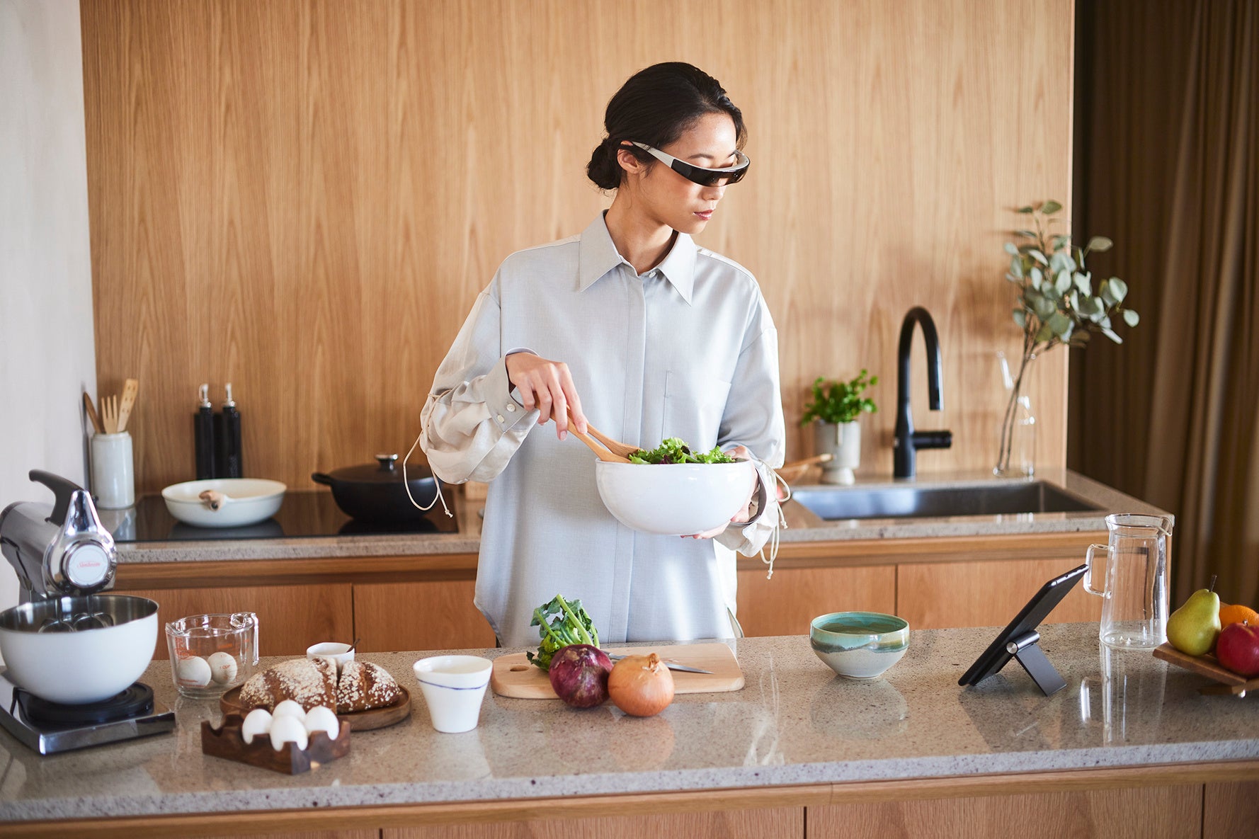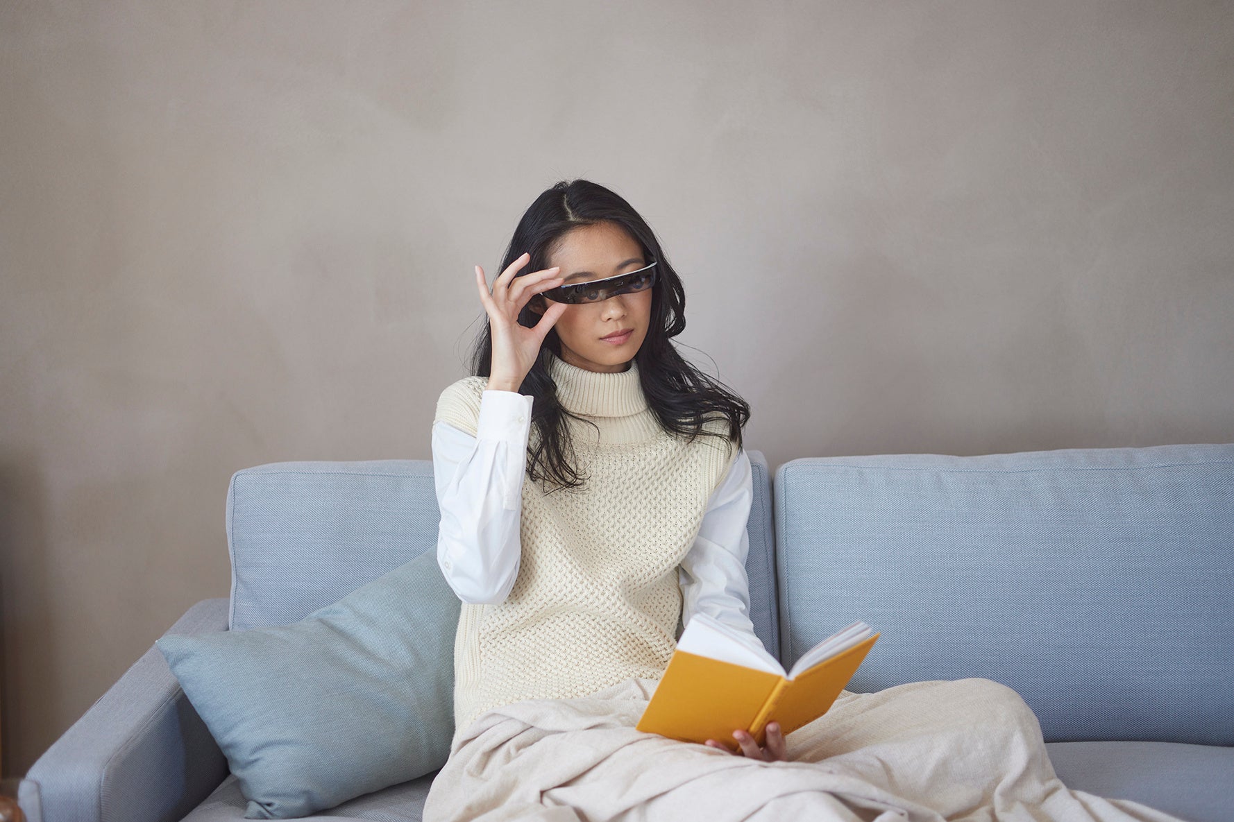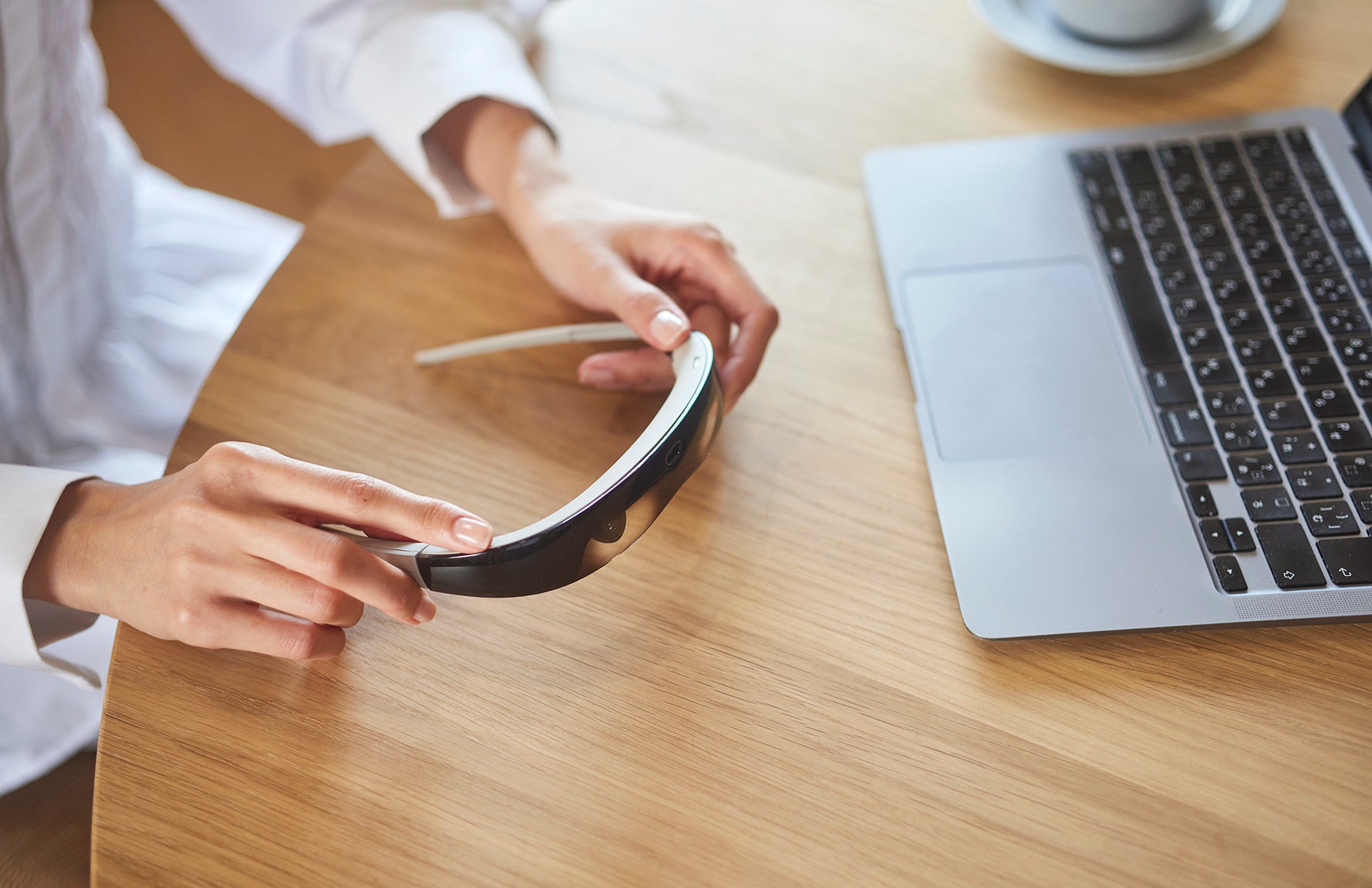 ViXion01(ヴィクシオンゼロワン)は、眼の酷使や加齢にともなう⾒え⽅の課題解決をサポートするアイウェアです。⾒る距離に応じてレンズの形状が瞬時に変化し、近くも遠くもスムーズなピント調節体験を提供します。⾰新性を想起させる近未来的なデザインは、世界的デザインファームnendoの佐藤オオキ氏によるものです。