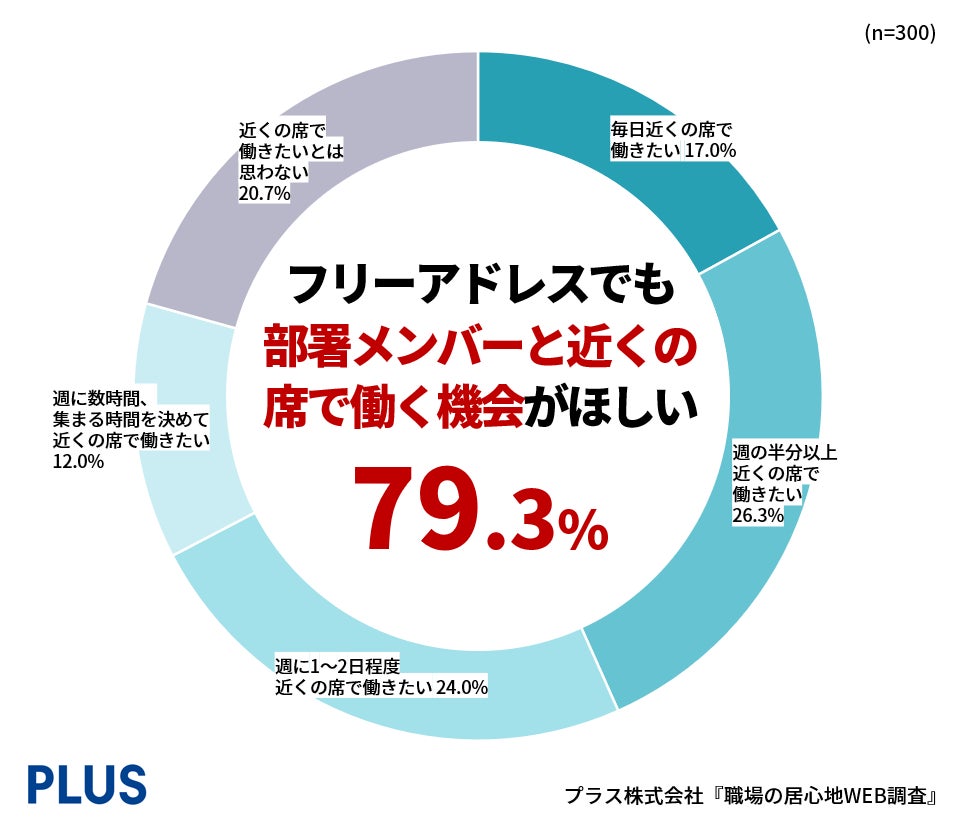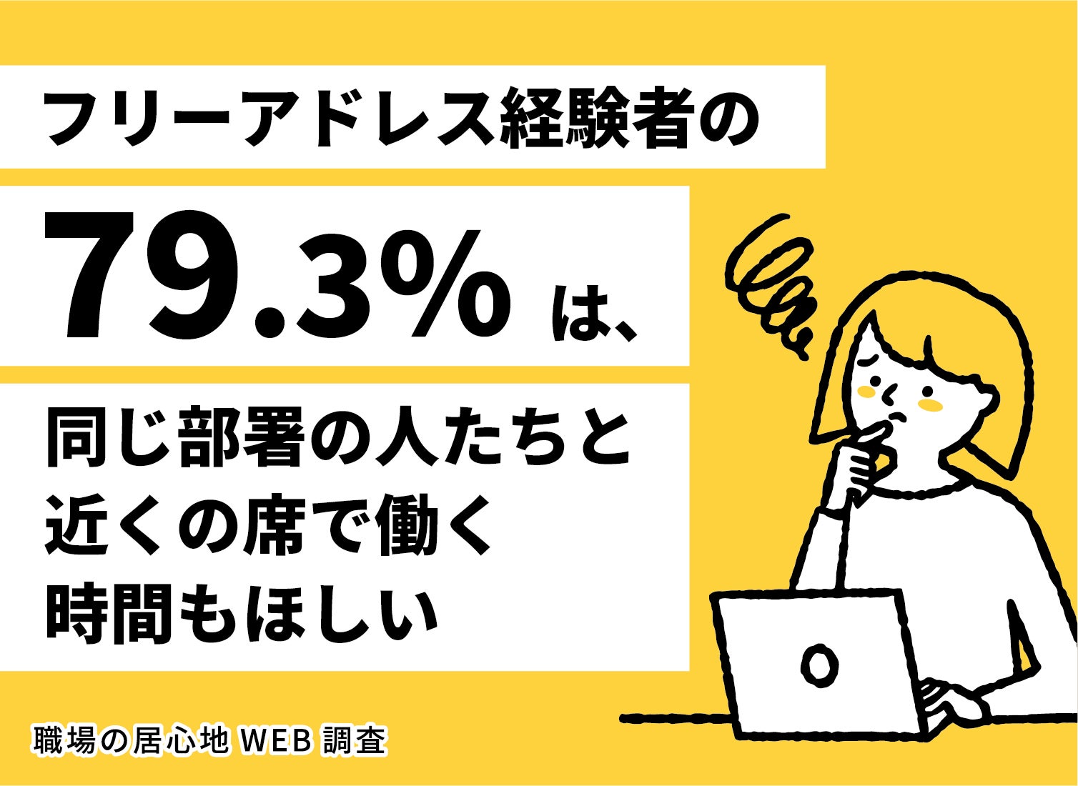 【職場の居心地WEB調査】「フリーアドレスでも、同じ部署の人たちと近くで働く時間がほしい」79.3%