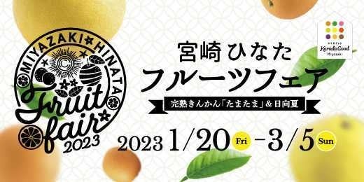 関西圏にお住まいのみなさまへ宮崎県の魅力を伝える宮崎県大阪事務所(所在:大阪府大阪市)は、2023年1月20日(金)~3月5日(日)の期間限定で、全国の加盟店舗による『宮崎ひなたフルーツフェア』(主催:みやざきブランド推進本部)が開催され、特産品が当たる抽選会を行うことをお知らせします。是非この機会に、旬を迎えたひなたフルーツをお楽しみください。