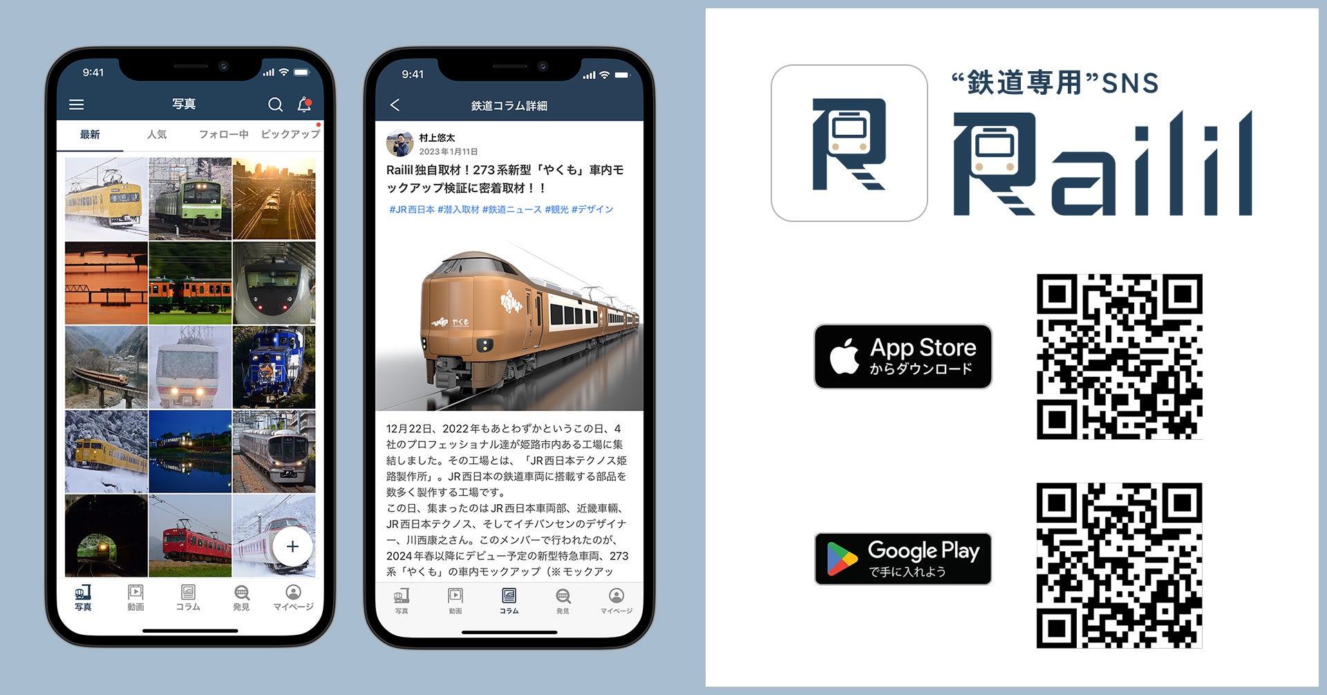 “鉄道専用”SNS「Railil(レイリル)」は、JR西日本グループのJR西日本イノベーションズが運営する無料の“鉄道専用”SNSアプリです。